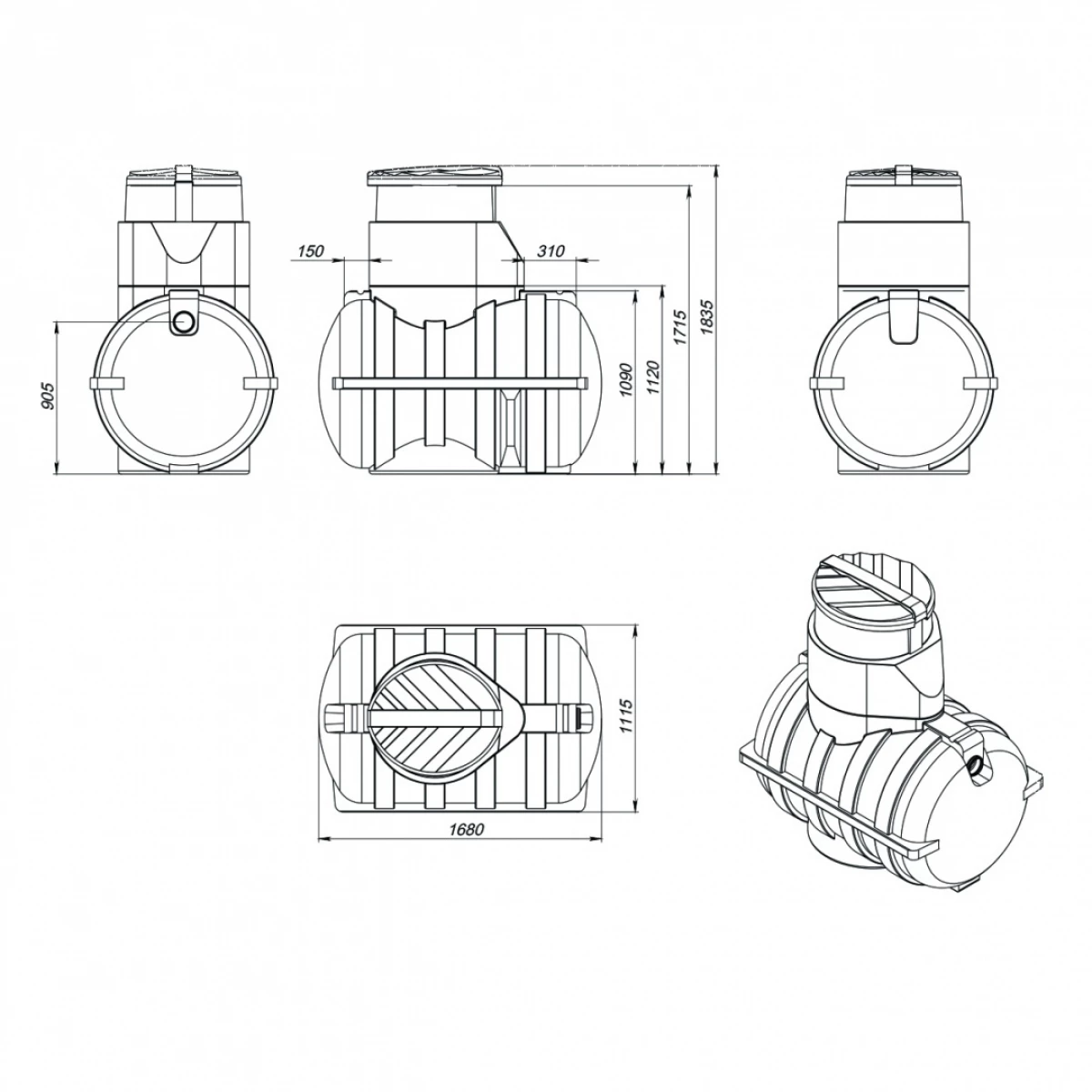 Емкость U1250 синяя предназначена для сбора, хранения и дальнейшего использования или утилизации питьевой и технической воды, хозяйственно-бытовых, дождевых и талых стоков.