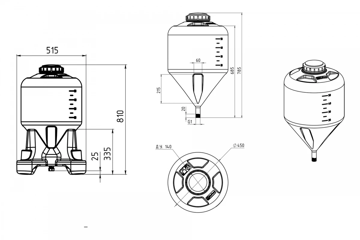 ЦКТ 60л - это конический ферментер для зернового и экстрактного пивоварения, а также приготовления любых видов браг. Коническая форма позволяет производить первичное и вторичное брожение в одной емкости, а также собирать дрожжевой осадок.