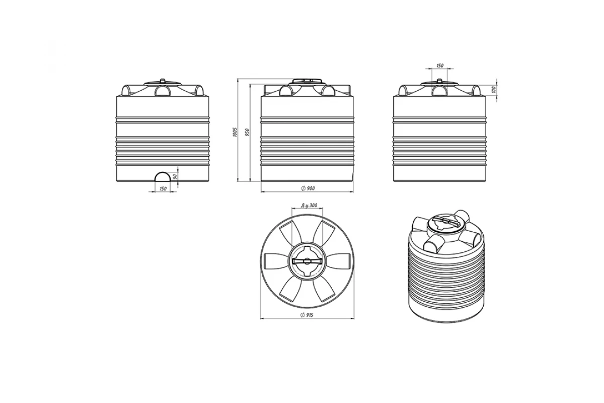Вертикальная цилиндрическая бочка ЭВЛ 500л имеет максимально устойчивую конструкцию и усилена специальными горизонтальными ребрами жесткости. Фактический объем ЭВЛ 500л составляет 560 литров.
