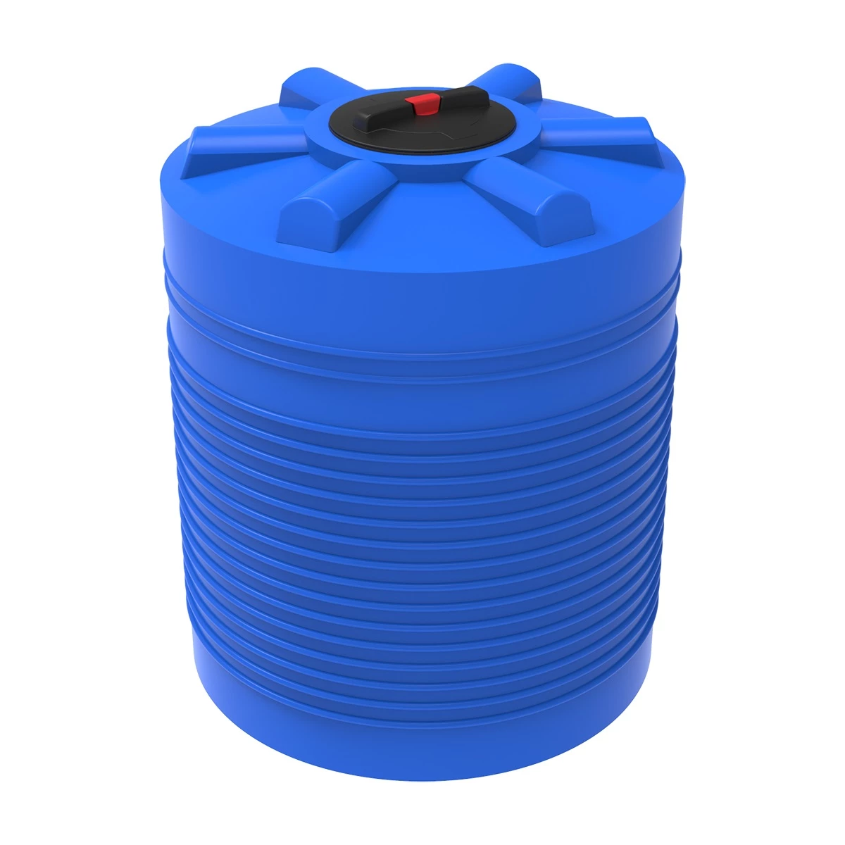 Вертикальная цилиндрическая бочка ЭВЛ 750л имеет максимально устойчивую конструкцию и усилена специальными горизонтальными ребрами жесткости.