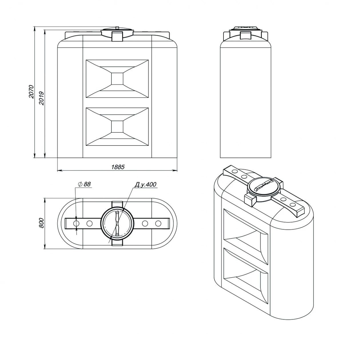 Емкость изготовлена из пищевого первичного полиэтилена. Материал обладает высокой устойчивостью к химическому и ультрафиолетовому воздействию, может эксплуатироваться в температурном диапазоне от -30 до +60 градусов. Корпус емкости цельнолитой – герметичен на 100%.
