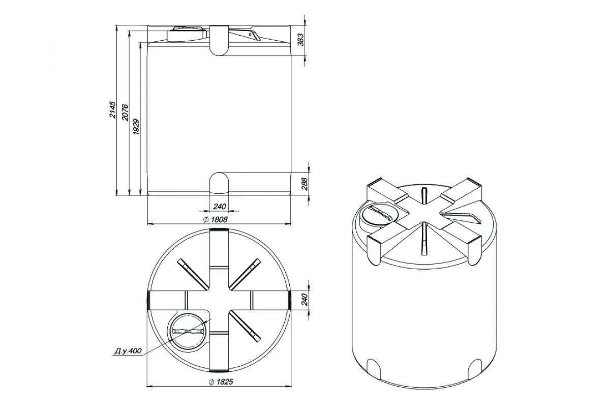Крупногабаритная вертикальная емкость T объемом 5 кубов имеет фактический объем более 5400 литров.