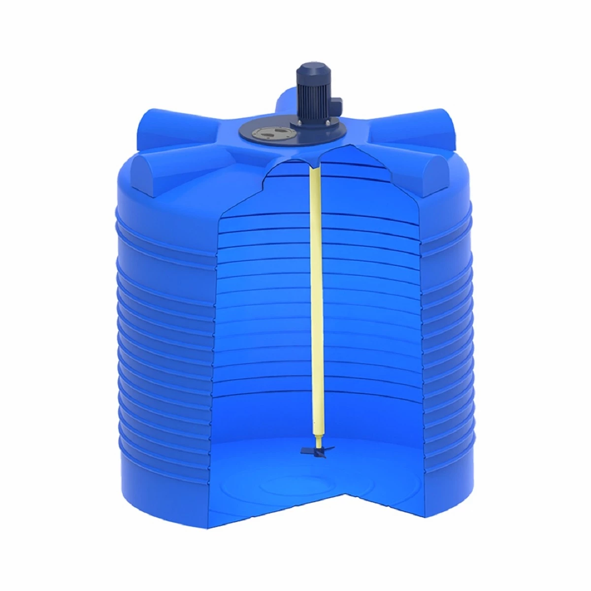 Мешалки весом до 25 кг устанавливаются непосредственно на крышку или ребра емкости. Крышка также выполнена из композитного материала.