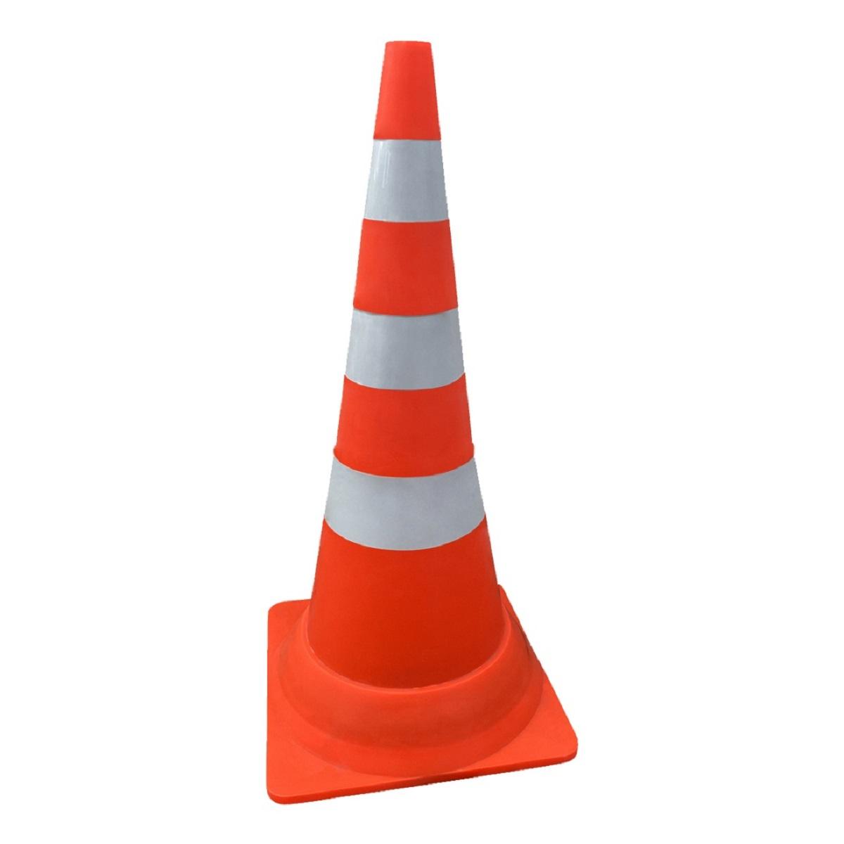 Дорожные сигнальные конусы изготовлены из специального полимерного состава, методом экструзии. Конусы легко разместить на любой поверхности – асфальт, плитка, грунт, газон. Коническая форма удобна для хранения, а использование утяжеляющих материалов обеспечивает устойчивость на дороге.
