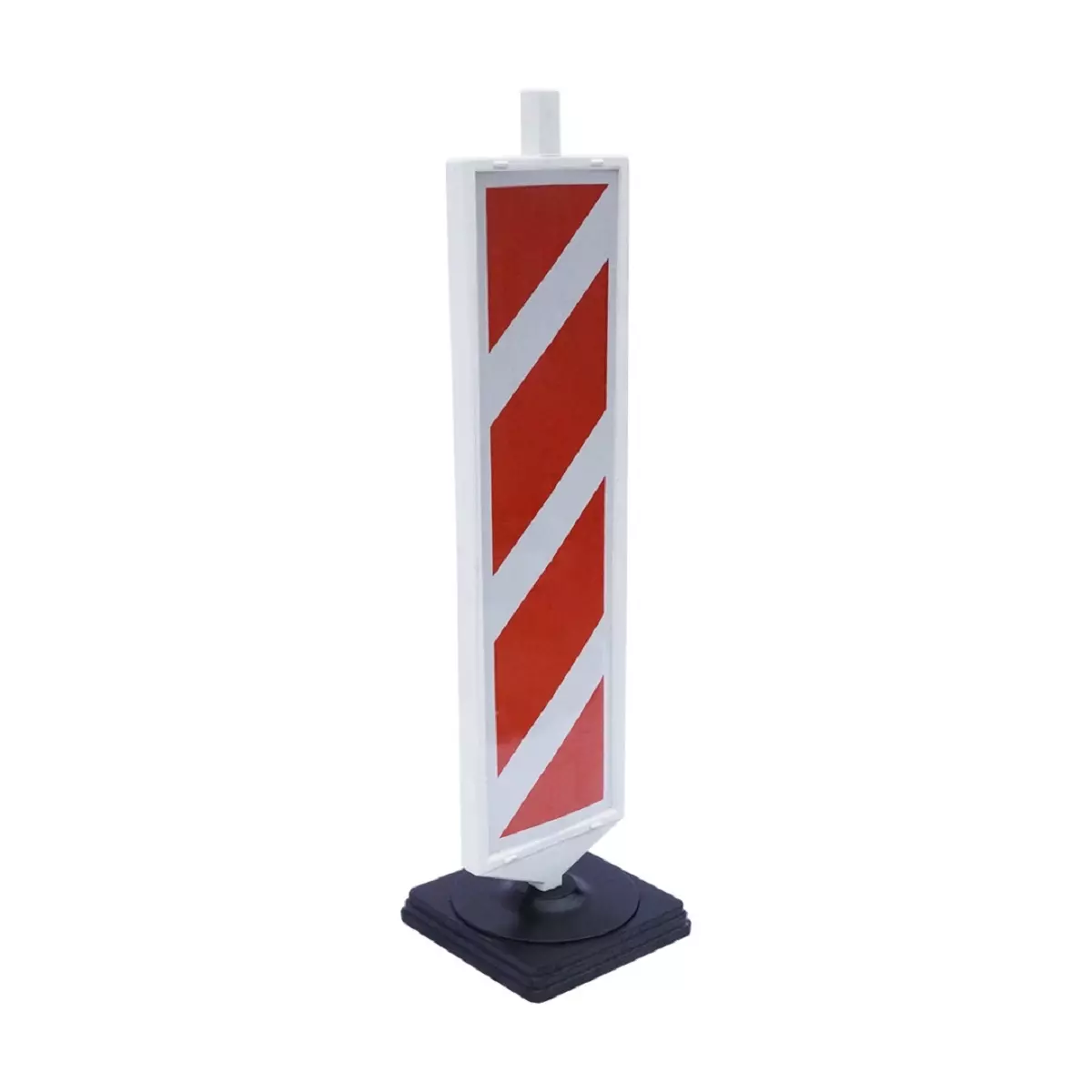 Комплектуется маской знака 8.22.2 (Объезд слева), изготовленной из светоотражающей пленки типа А или Б. Может быть выполнен в одностороннем или двустороннем вариантах нанесения маски. Для полной комплектации конструкции необходимо дополнить её специальными устойчивыми подставками.