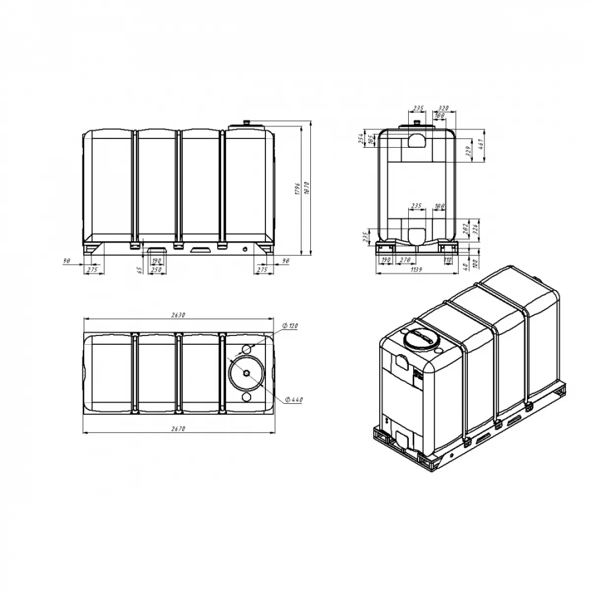 габариты емкости и обрешетки разработаны специально для размещения в авто- и ж/д транспорте.
