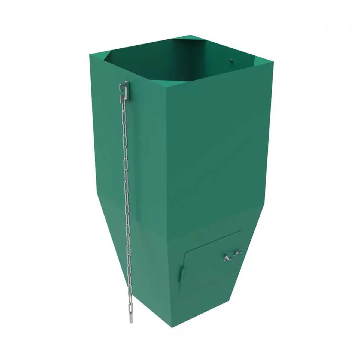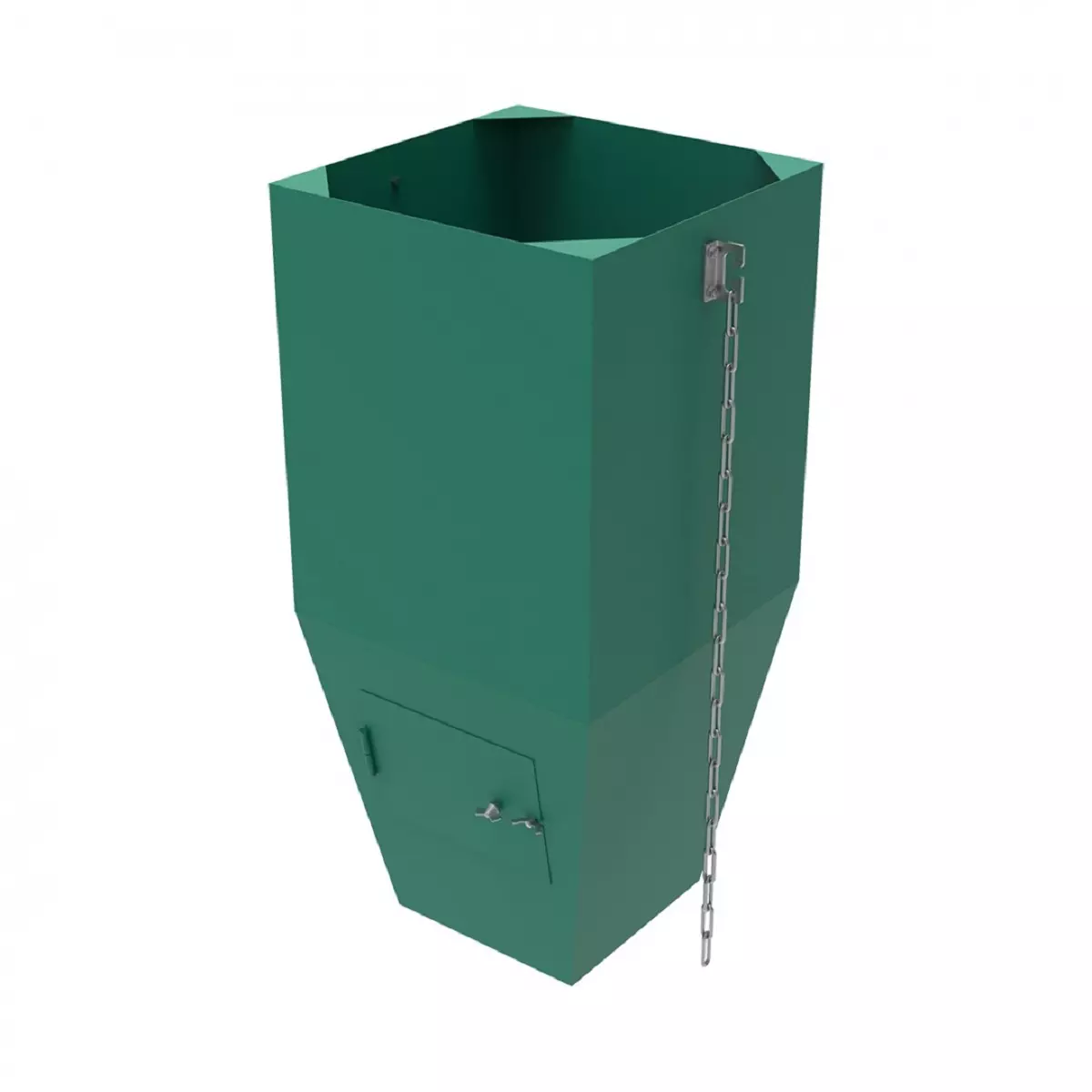Данная модель гасителя изготовлена из металла толщиной 1,5 мм и имеет в составе специальную ревизионную дверцу, через которую можно осуществить устранение затора крупных элементов мусора в случае необходимости. Дверца расположена в задней части изделия, что обеспечивает комфортный доступ обслуживающего персонала заказчика.