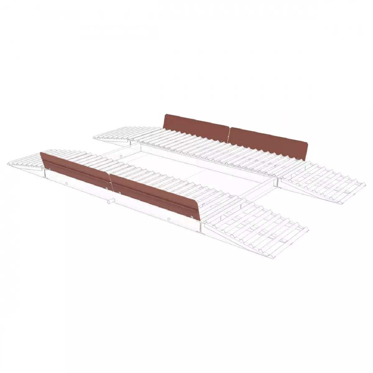 Защитный щиток для эстакады предназначен для дополнительной экономии воды в процессе мойки колес грузового автотранспорта, а также для сохранения чистоты в рабочей зоне вокруг эстакады. Он защищает оператора очистной установки от брызг и водяной пыли, при этом служит дополнительным ориентиром для водителя обслуживаемой машины при съезде-заезде на эстакаду.