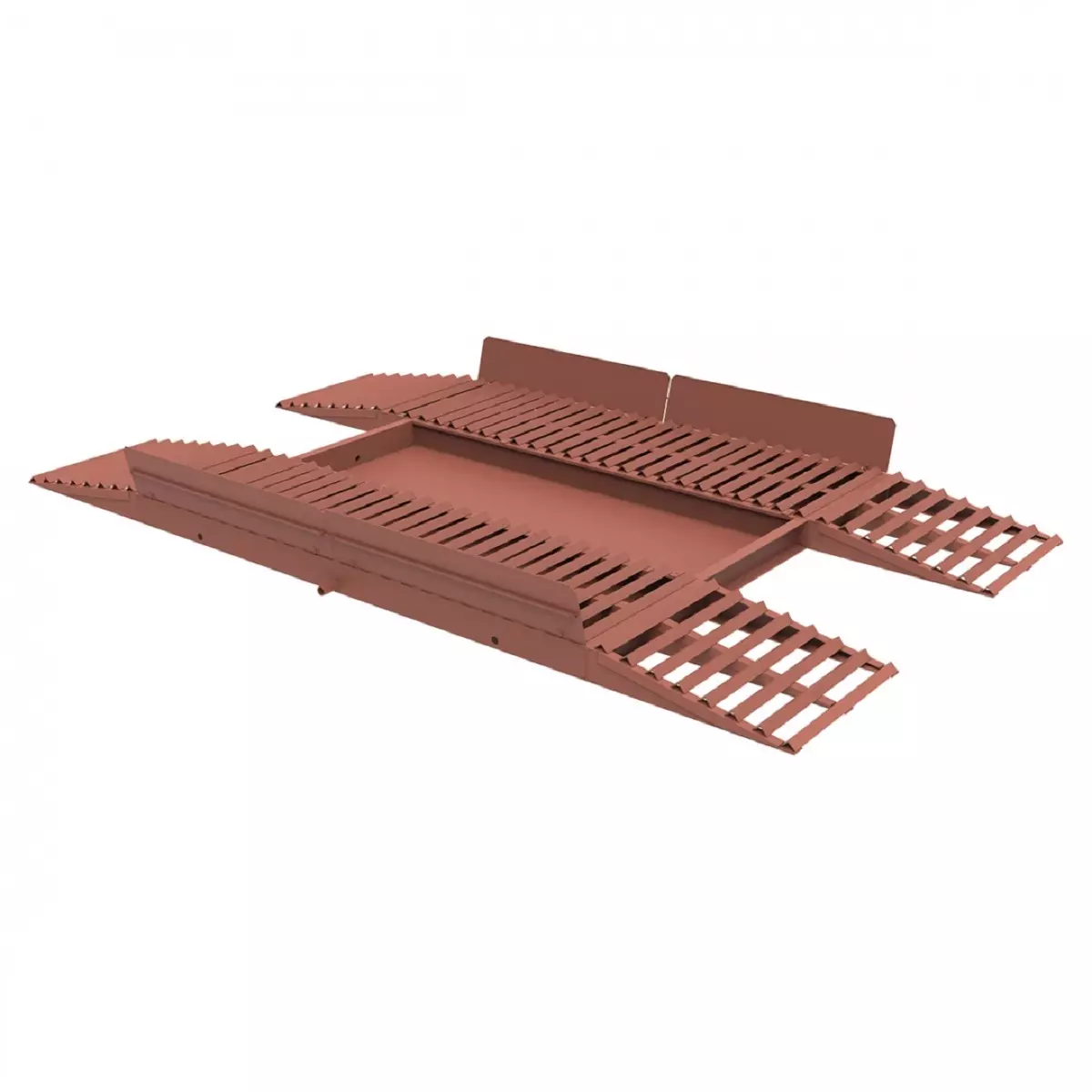 Защитный щиток изготовлен из металла и снабжен специальным резиновым уплотнителем, смонтированным по всему периметру. Этот уплотнитель служит для герметизации стыковочного шва между щитком и грузовой платформой. На каждое изделие в процессе производства наносится защитное покрытие, обеспечивающее максимальную долговечность щитка.