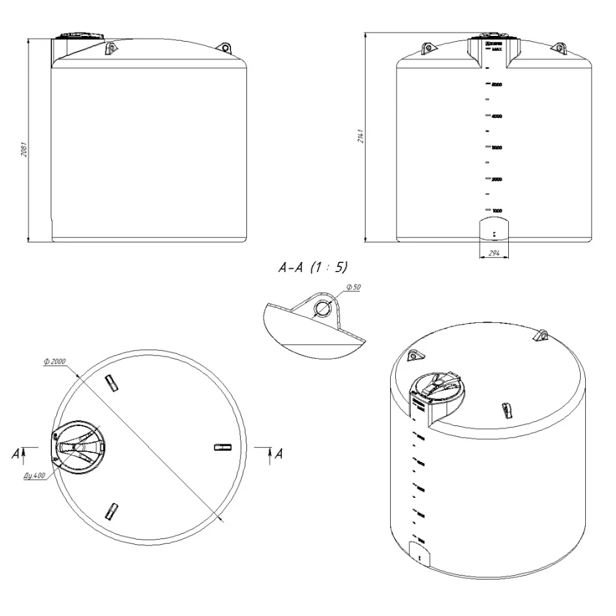 Линейка вертикальных емкостей для КАС различного объема позволяет оптимально подобрать рабочий объем и включает емкости объемом: