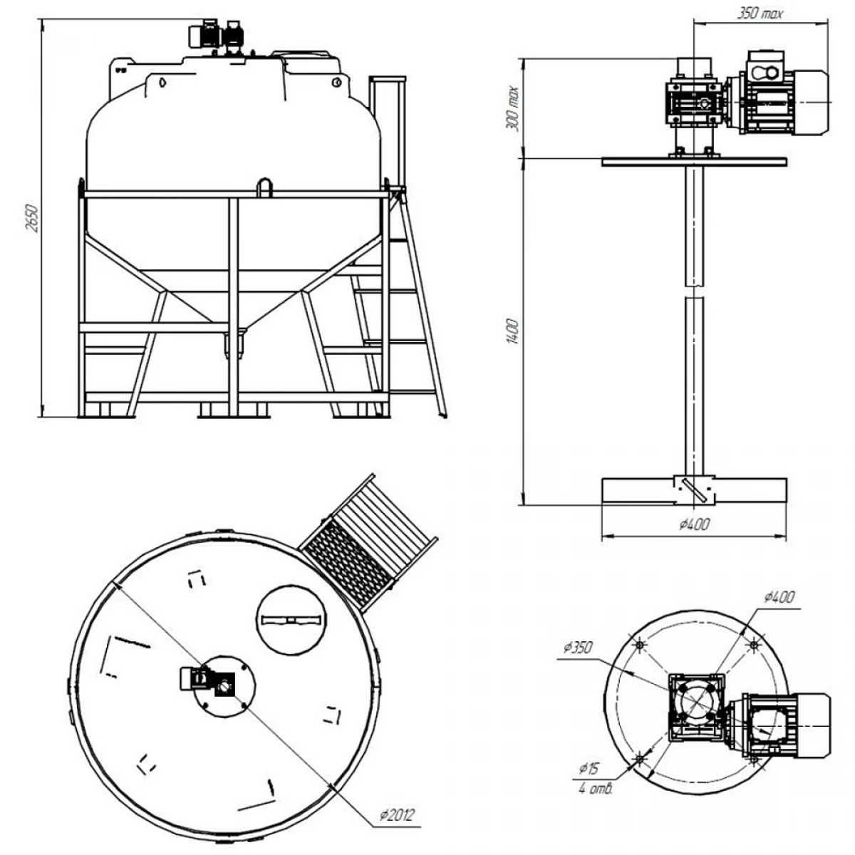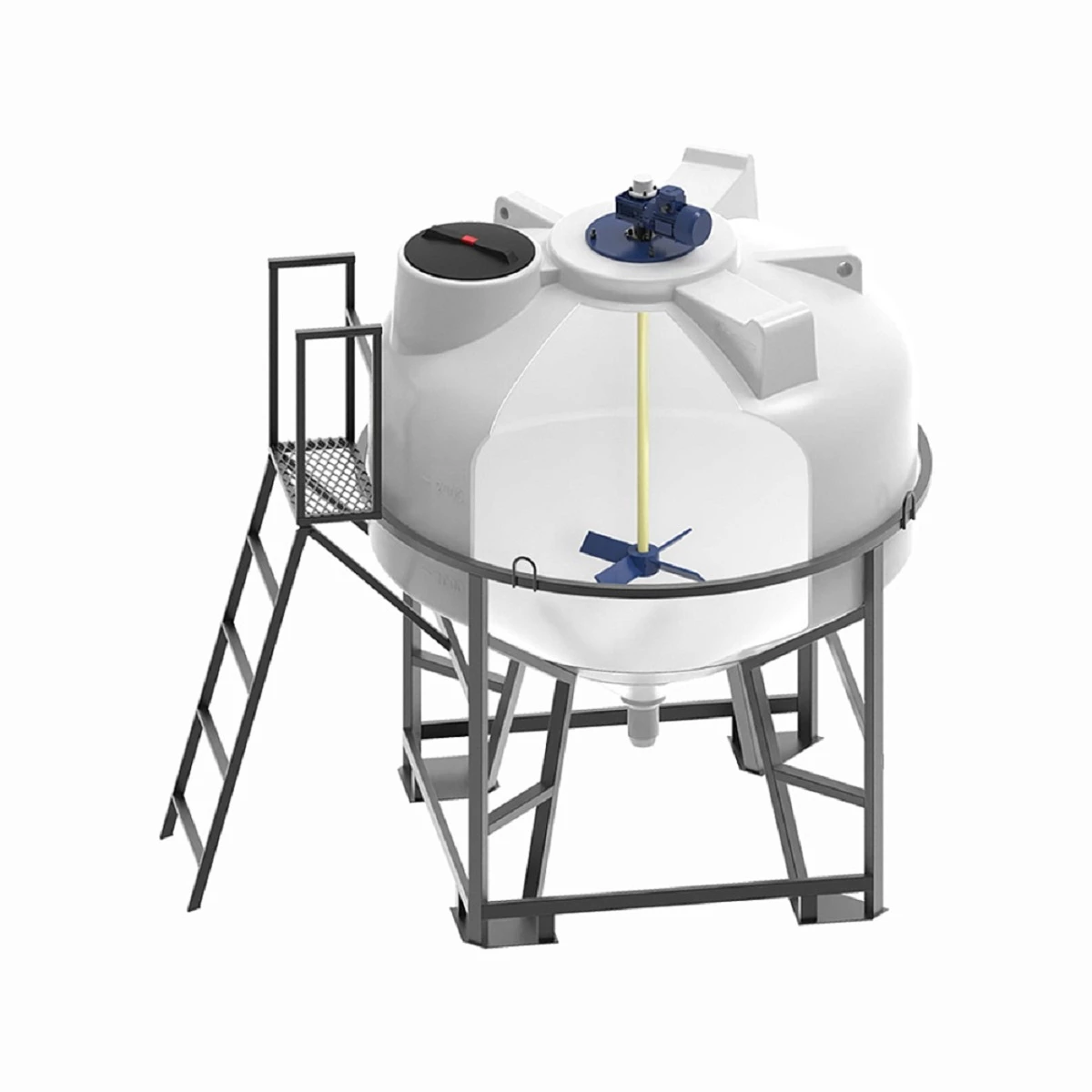 Лопастные мешалки необходимо устанавливать по центру емкости для обеспечения равномерного перемешивания раствора. Мешалки весом до 25 кг устанавливаются непосредственно на крышку емкости. Крышка также выполнена из композитного материала.