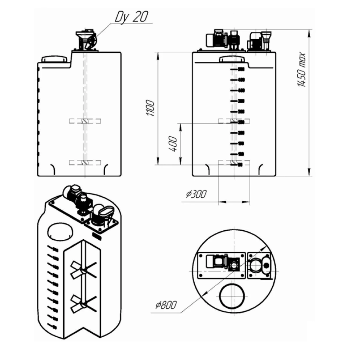 Все части мешалки, имеющие контакт с жидкостью, изготовлены из коррозийно стойкого материала – композита, что в том числе обеспечивает повышенную стойкость к абразиву. Мешалки из композитного материала обладают отличной механической прочностью, устойчивы к химически агрессивными жидкостям.