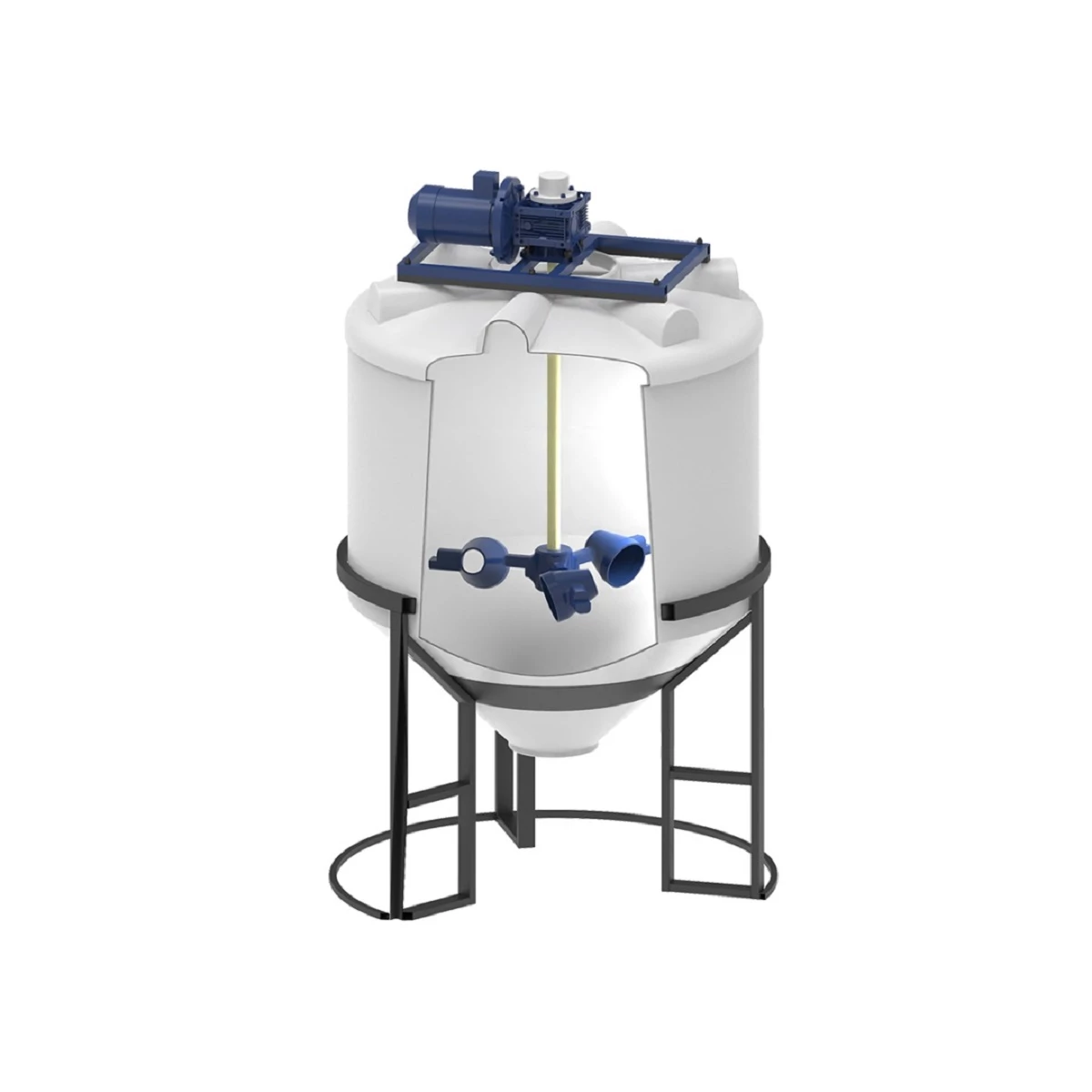 Мешалки конусного типа создают турбулентный поток, характеризуются отсутствием застойных зон. Предназначены для гомогенизации, предотвращения осаждения, бережного перемешивания. Не вспенивают склонные к вспениванию жидкости, характеризуются низким энергопотреблением по сравнению с другими мешалками, не насыщает жидкости воздухом.