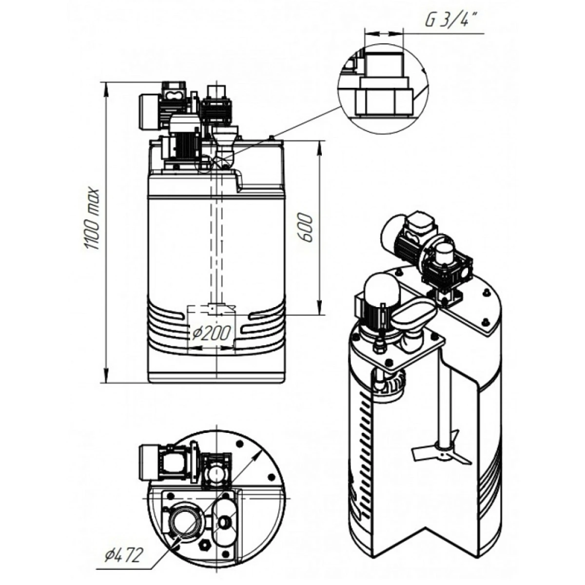 Все части мешалки, имеющие контакт с жидкостью, изготовлены из коррозийно стойкого материала – композита, что в том числе обеспечивает повышенную стойкость к абразиву. Мешалки из композитного материала обладают отличной механической прочностью, устойчивы к химически агрессивными жидкостям.