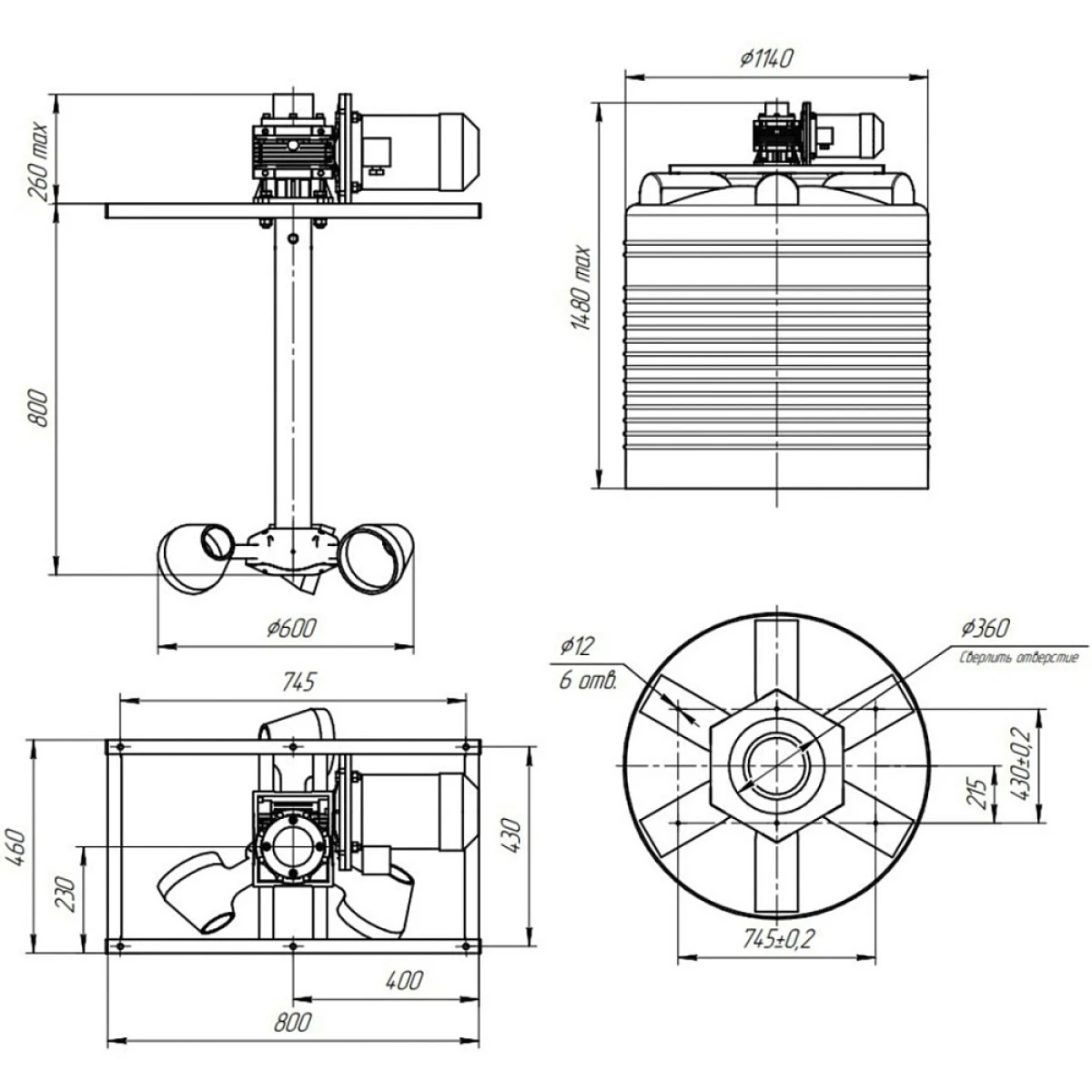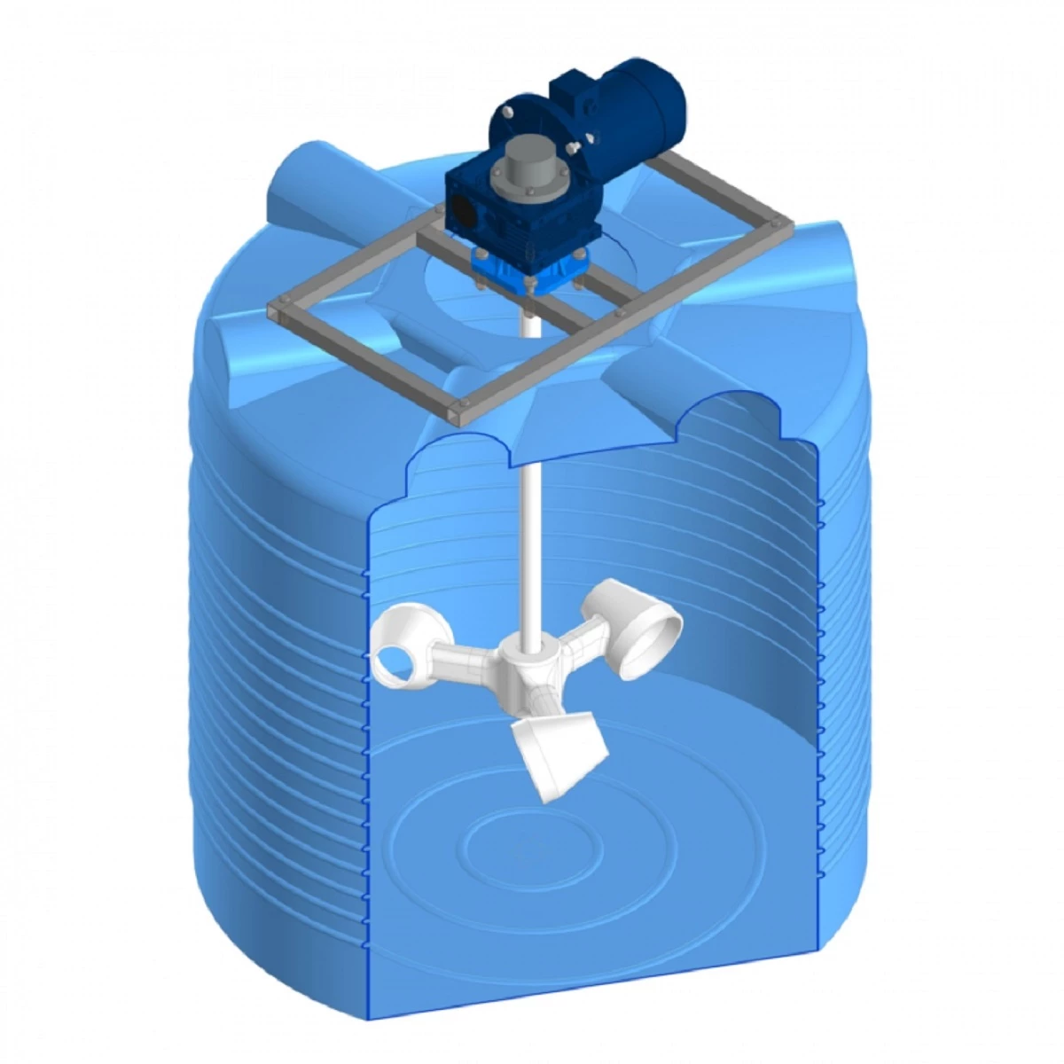 Мешалка специально подобрана для дозировочной емкости ЭВЛ 1000 литров с учетом габаритов и конструктивных особенностей емкости. Емкость поставляется с уже установленной мешалкой.