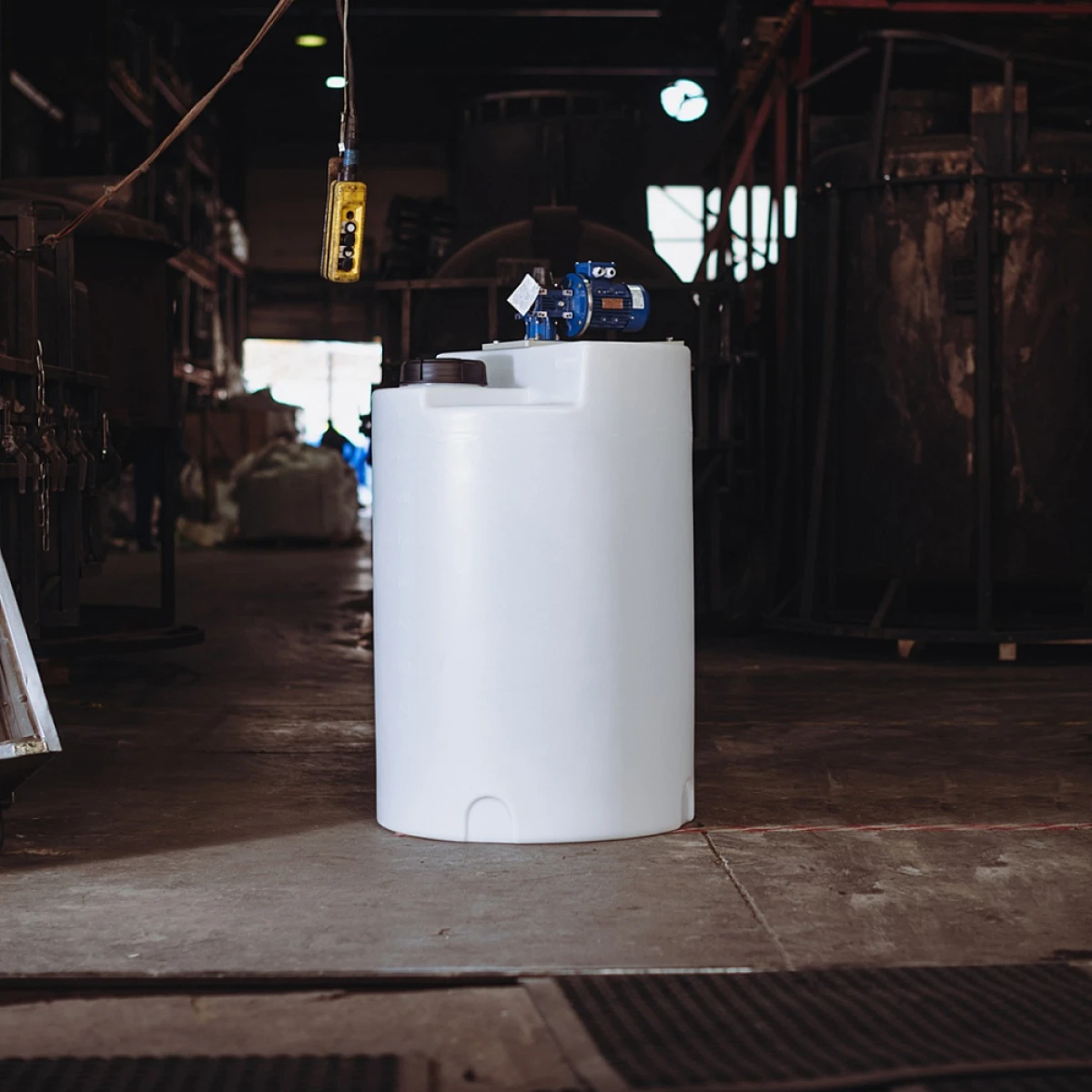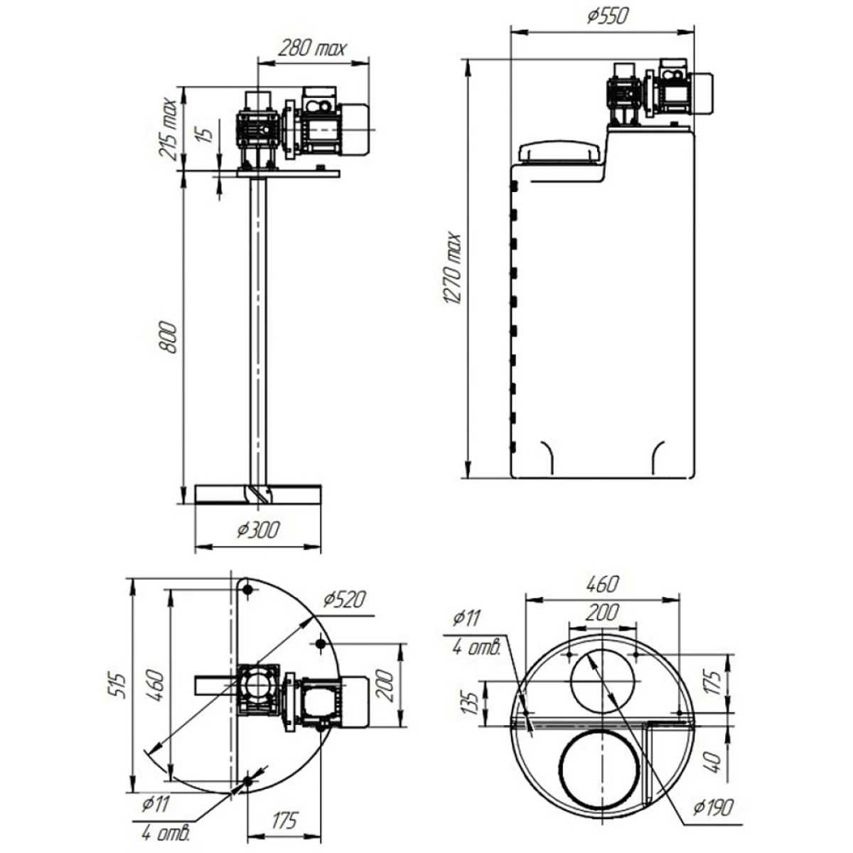 Мешалка специально подобрана для дозировочной емкости 200 литров с учетом габаритов и конструктивных особенностей емкости. Емкость поставляется с уже установленной мешалкой.