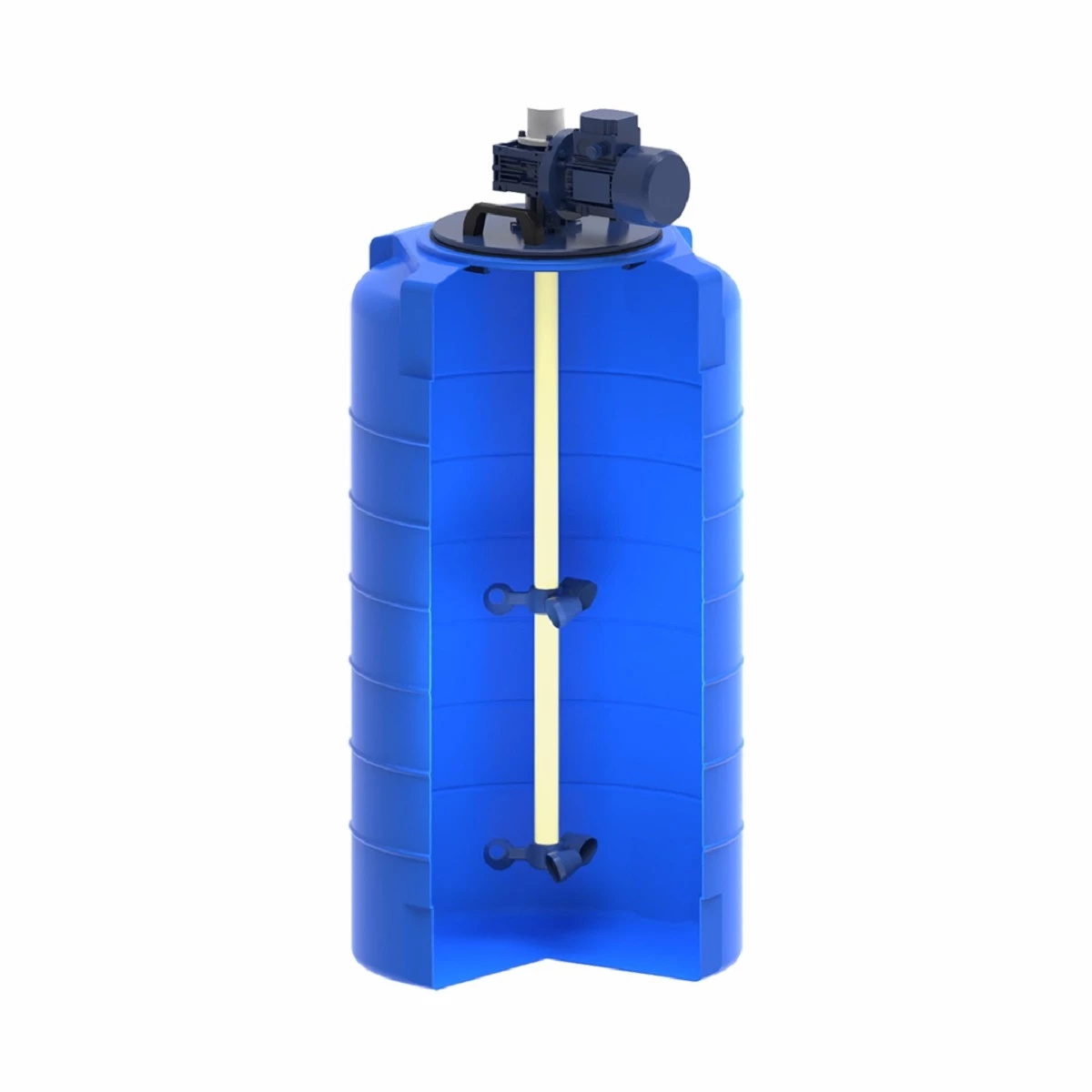Мешалка специально подобрана для дозировочной емкости T 300 литров с учетом габаритов и конструктивных особенностей емкости. Емкость поставляется с уже установленной мешалкой.
