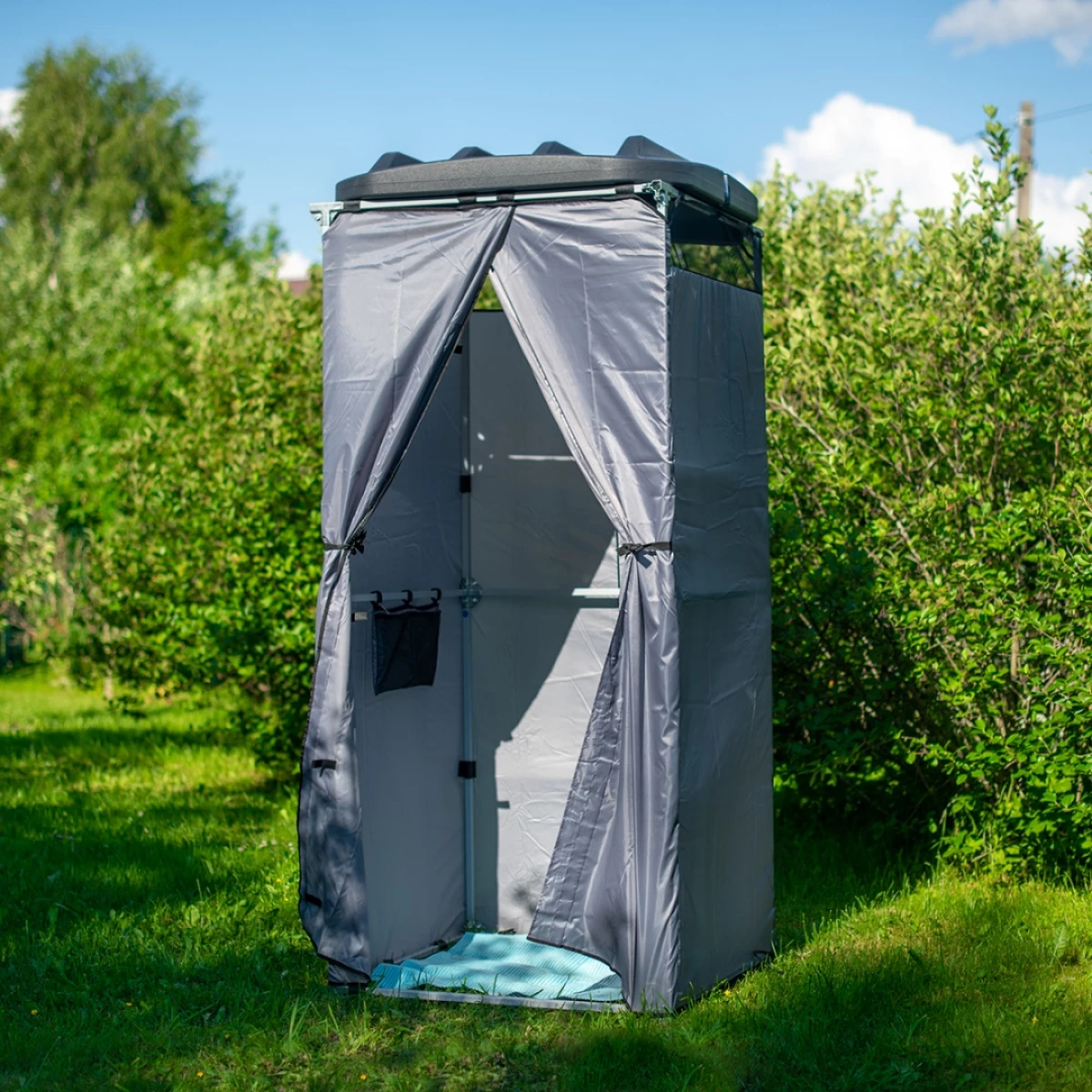 Бак объемом 110 литров удобно использовать в кабинке для летнего душа в качестве крыши всей конструкции.