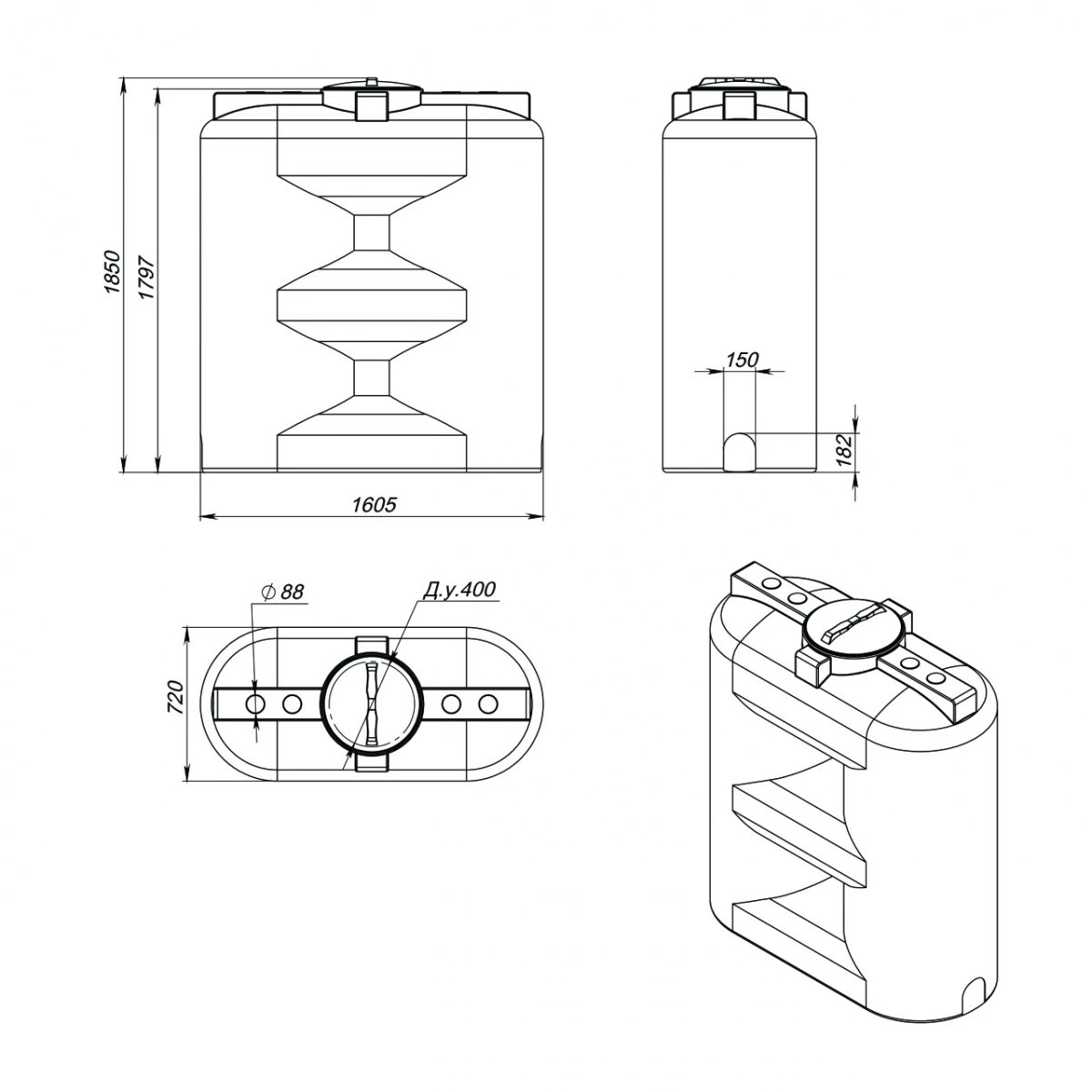Емкость изготовлена из пищевого первичного полиэтилена. Материал обладает высокой устойчивостью к химическому и ультрафиолетовому воздействию, может эксплуатироваться в температурном диапазоне от -30 до +60 градусов. Корпус емкости цельнолитой – герметичен на 100%.