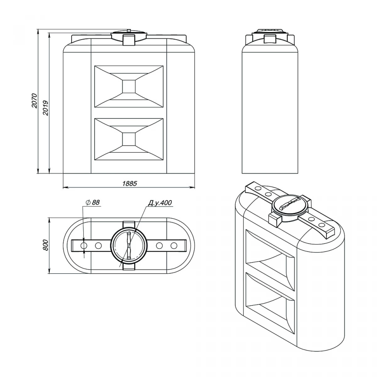 Емкость изготовлена из пищевого первичного полиэтилена. Материал обладает высокой устойчивостью к химическому и ультрафиолетовому воздействию, может эксплуатироваться в температурном диапазоне от -40 до +60 градусов. Корпус емкости цельнолитой – герметичен на 100%.