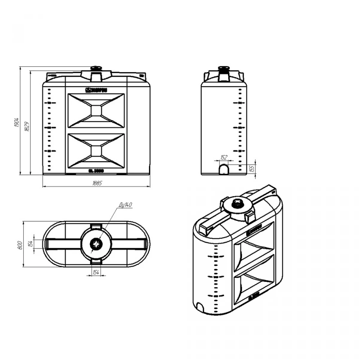 Емкость SL 2000 New – резервуар объемом 2000 литров, предназначенный для хранения и транспортировки веществ плотностью до 1,0 г/см³ включительно,