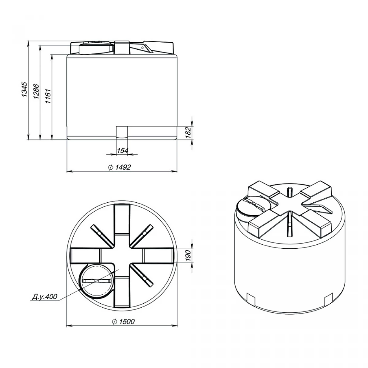 Диаметр горловины емкости составляет 400 мм, диаметр крышки 457 мм.