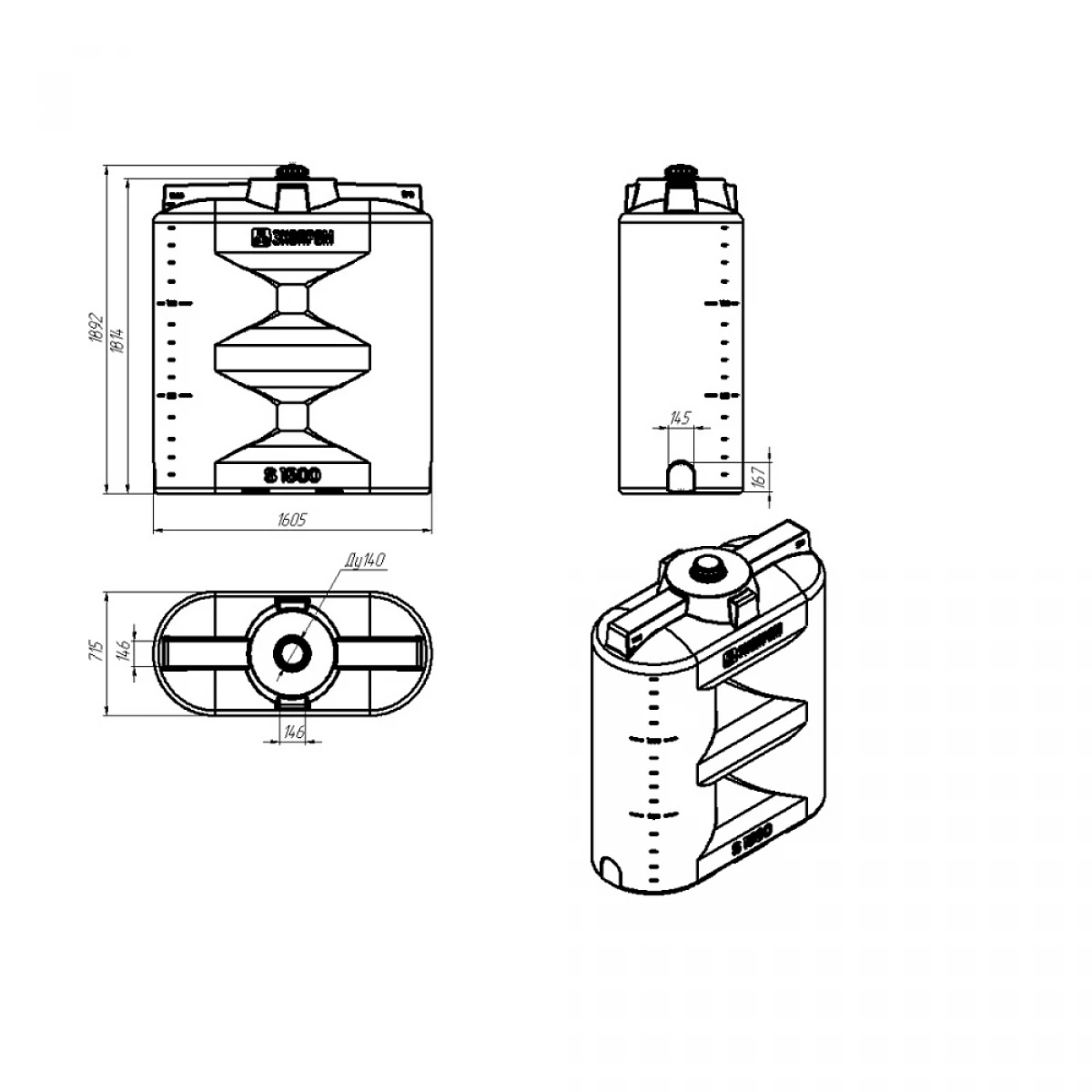 Топливная емкость S 1500 New входит в серию S, которая имеет широкий размерный ряд: