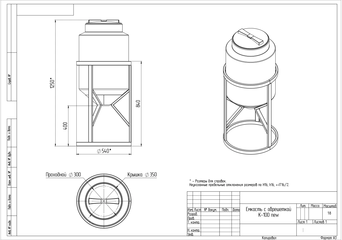 Обрешетка емкости К, изготовленная из высококачественного металла, обеспечивает удобство эксплуатации резервуара.