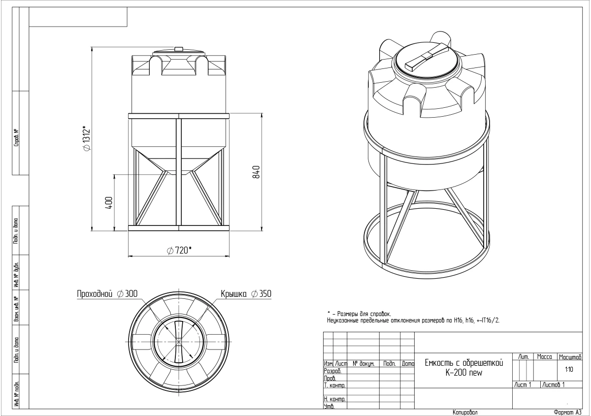 | Диаметр горловины, мм | 300 |