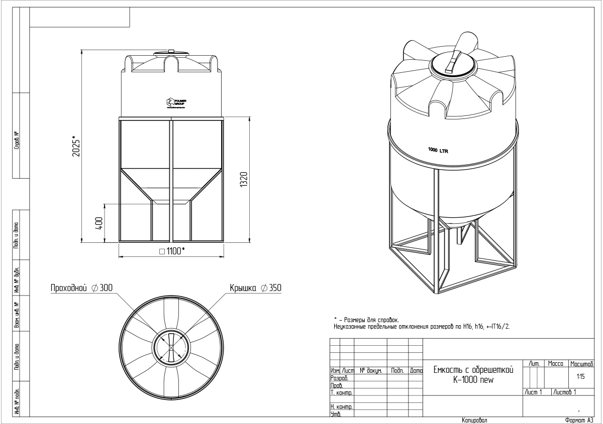 | Объем, л | 1000 |