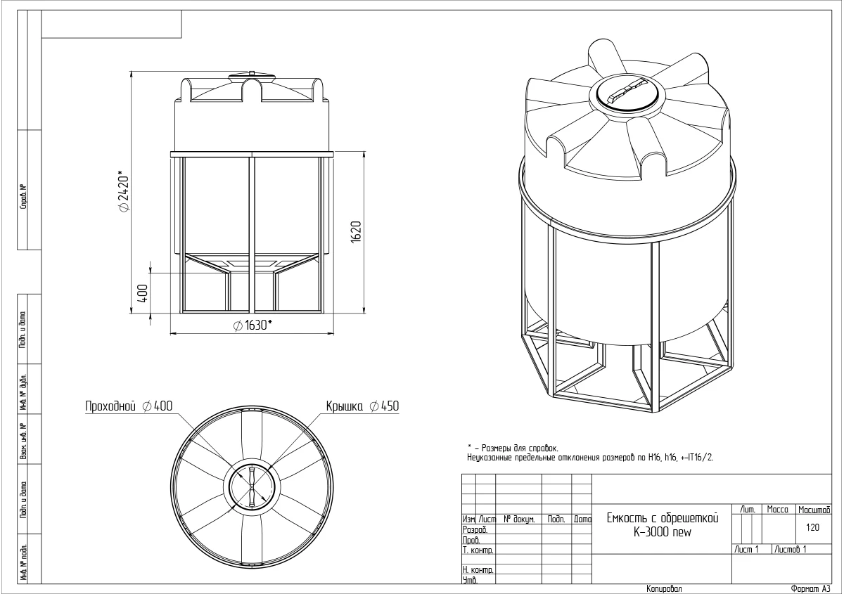 Обрешетка емкости К, изготовленная из высококачественного металла, обеспечивает удобство эксплуатации резервуара.
