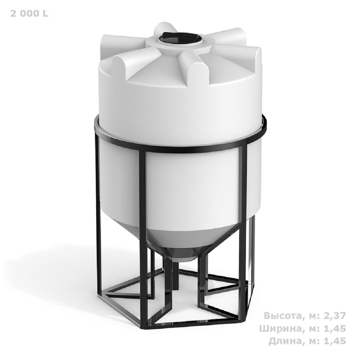 Емкости серии К – цилиндрические резервуары с конусным дном, обеспечивающим дозированную подачу и полный слив хранящихся в баке веществ.