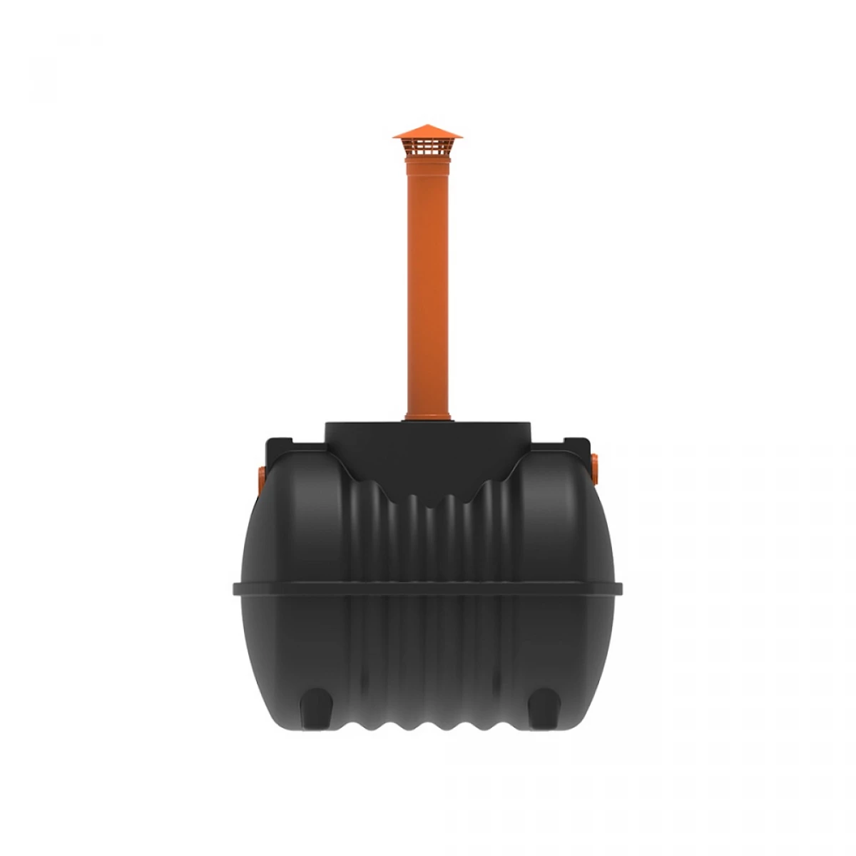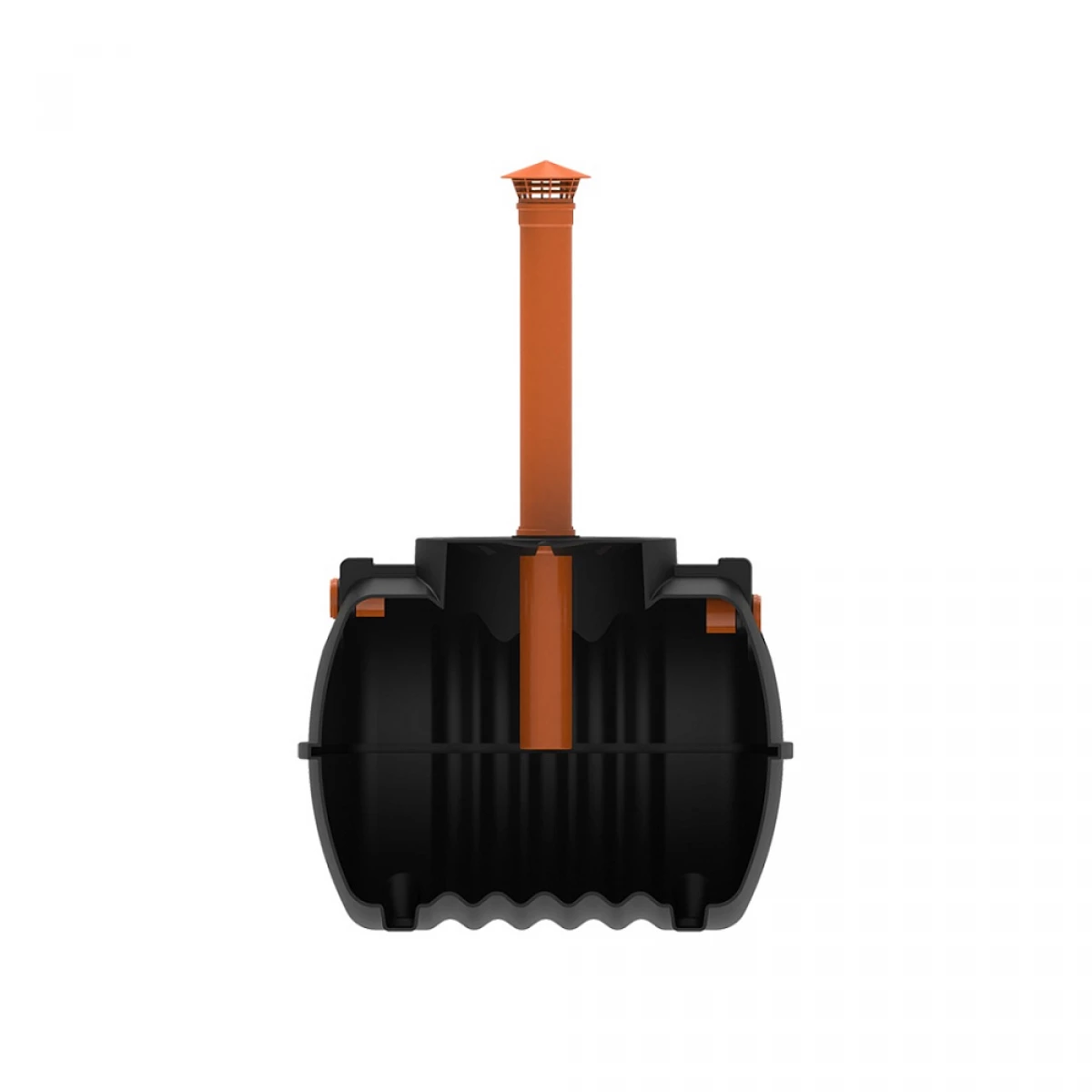 Там, где доступ человека не требуется (емкость используется как накопитель хозяйственно-бытовых стоков, технической и дождевой воды, питьевой поды и т.д.), подойдёт вариант с шахтой 160 мм. Высота шахты составляет 1000 мм. Шахту можно обрезать или нарастить в зависимости от глубины подводящей трубы.