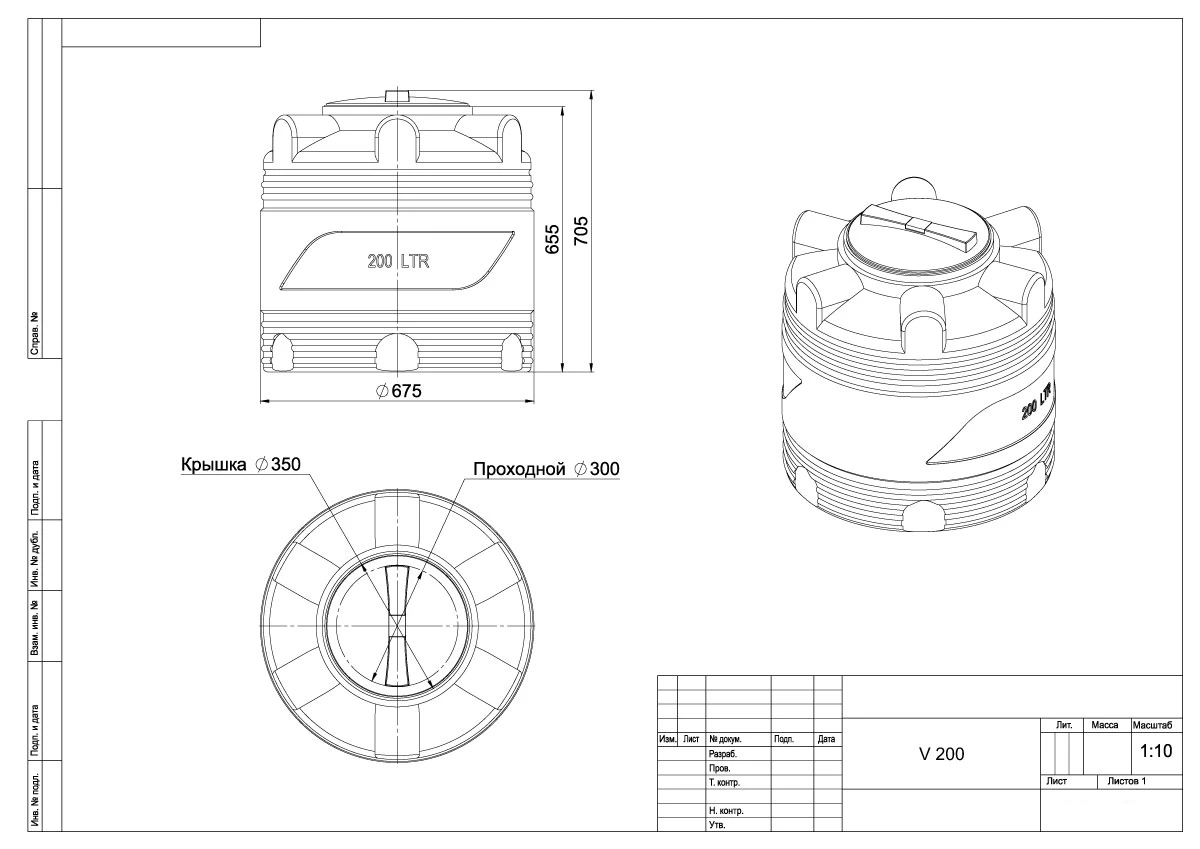 Емкость V 200 объемом 200 литров обладает улучшенными эксплуатационными характеристиками благодаря специально разработанным ребрам жесткости. Эта емкость обладает повышенной устойчивостью к физическим нагрузкам. В ней можно хранить питьевую и техническую воду, различные жидкости и дизельное топливо.