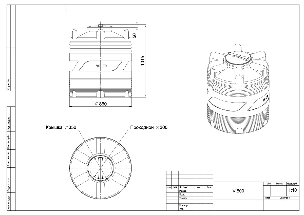 | Объем, л | 500 |