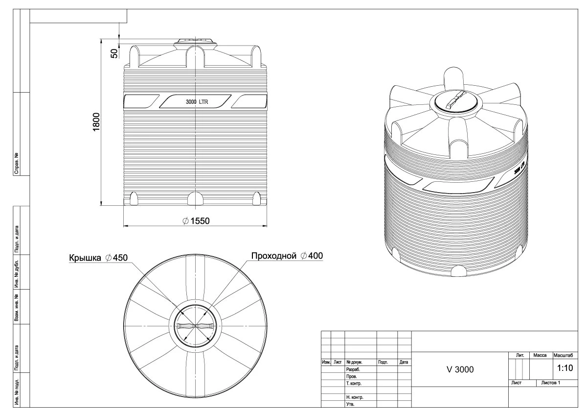 Емкость V 3000 объемом 3000 литров обладает улучшенными эксплуатационными характеристиками благодаря специально разработанным ребрам жесткости. Эта емкость обладает повышенной устойчивостью к физическим нагрузкам. В ней можно хранить питьевую и техническую воду, различные жидкости и дизельное топливо.