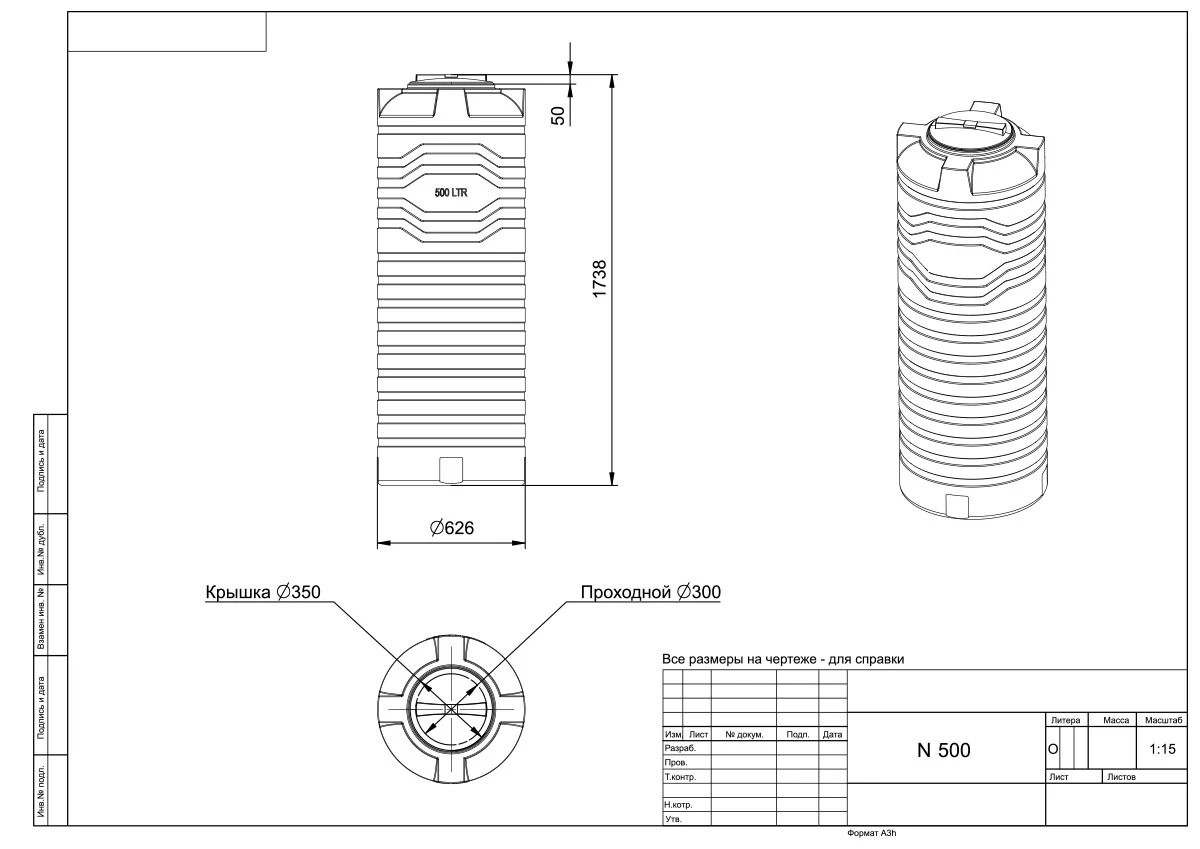 Узкая емкость 500 может быть укомплектована необходимыми для использования отводами. Сверление технологических отверстий и установка отводов – БЕСПЛАТНО (при единовременной покупке емкости и отвода).
