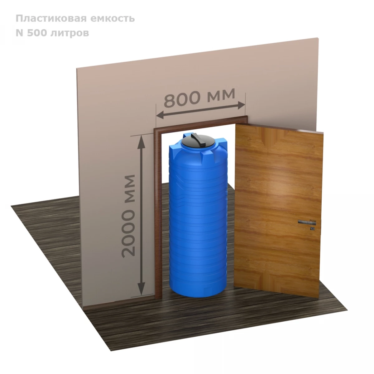 Узкая емкость N 500 отличается габаритами, которые специально рассчитаны на размещение внутри помещения, комфортно минуя узкий дверной проем. Пластиковая тонкая емкость N 500 предназначена для питьевой и технической воды, а также для хранения дизельного топлива и других веществ.