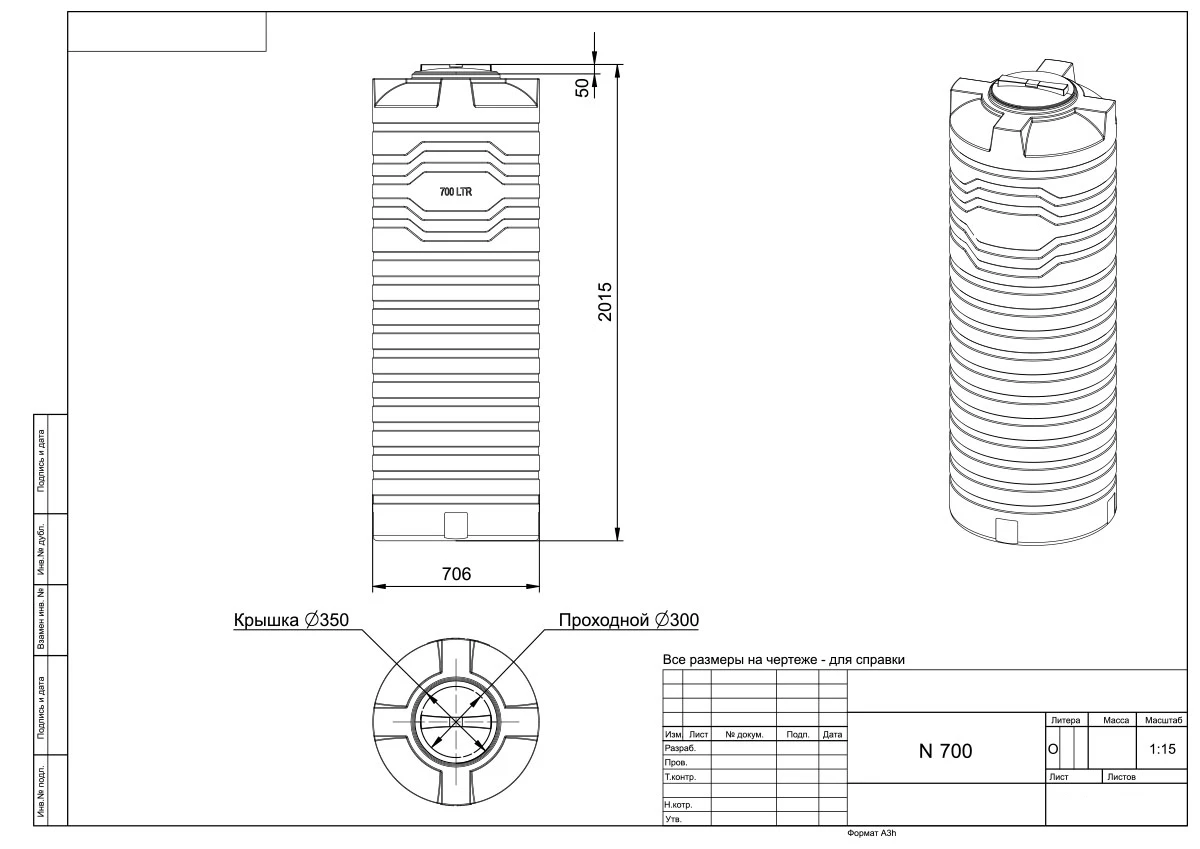 Узкая емкость N 700 отличается габаритами, которые специально рассчитаны на размещение внутри помещения, комфортно минуя дверные проемы. Пластиковая емкость N 700 предназначена для питьевой и технической воды, а также для хранения дизельного топлива и других веществ.