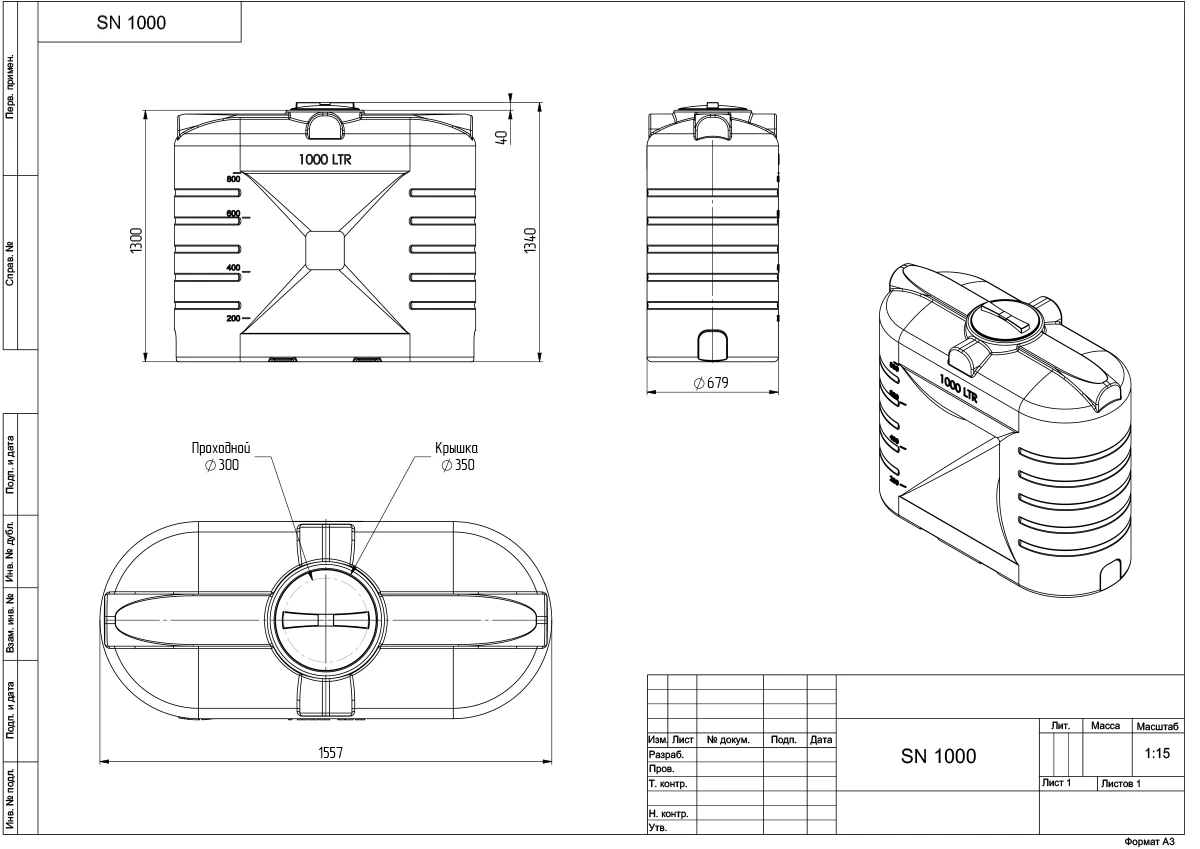 Емкость SN 1000 – это прямоугольный пластиковый бак объемом 1000 литров, предназначенный для хранения питьевой воды, технических жидкостей, а также дизельного топлива.