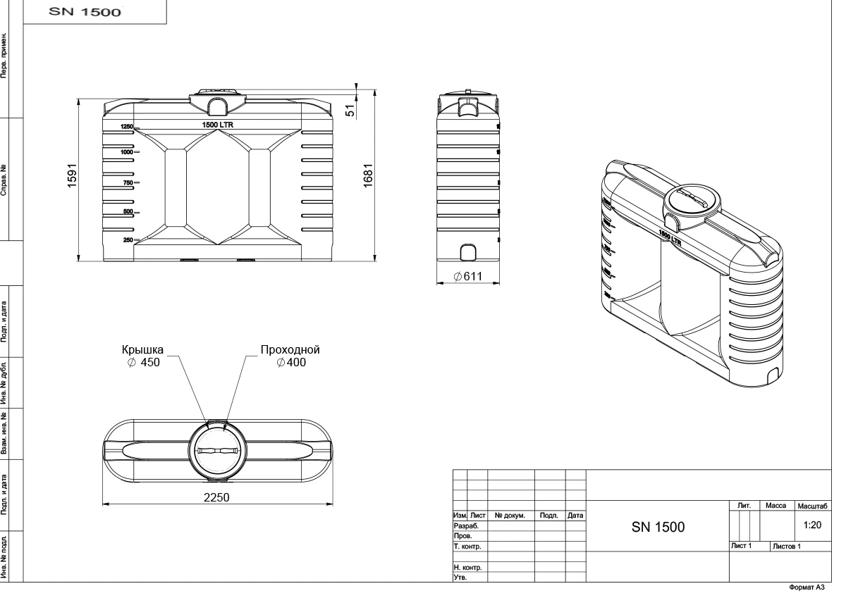 Емкость SN 1500 – это прямоугольный пластиковый бак объемом 1500 литров, предназначенный для хранения питьевой воды, технических жидкостей, а также дизельного топлива.