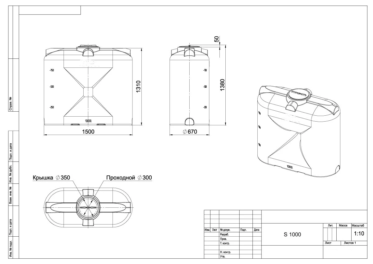 Емкость S 1000 – это прямоугольный пластиковый бак объемом 1000 литров, предназначенный для хранения питьевой воды, технических жидкостей, а также дизельного топлива.