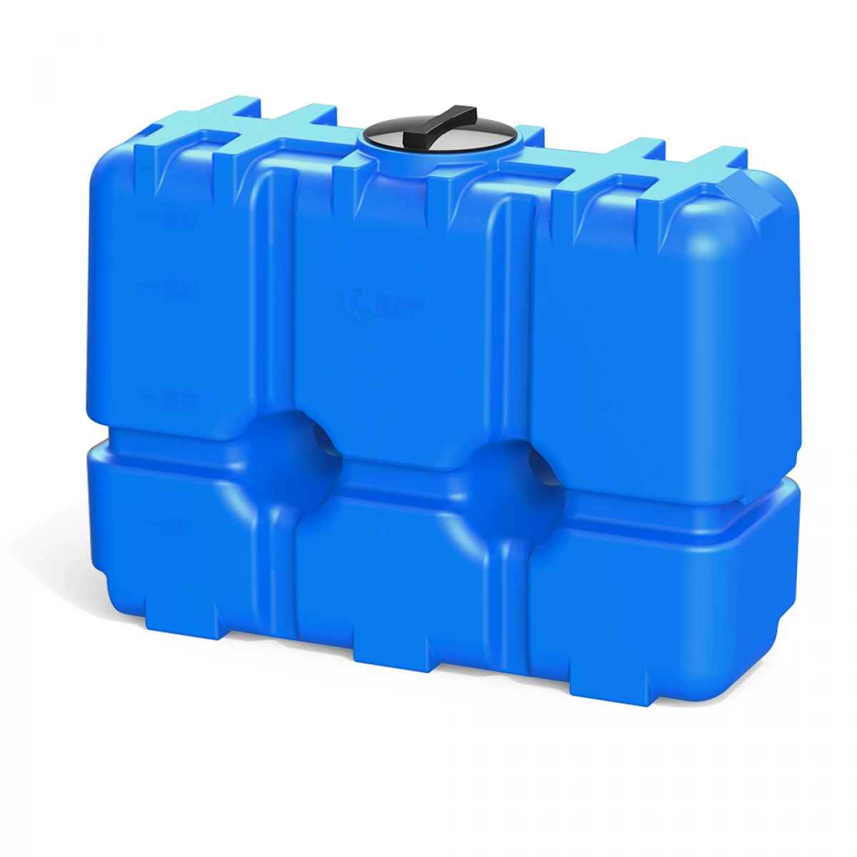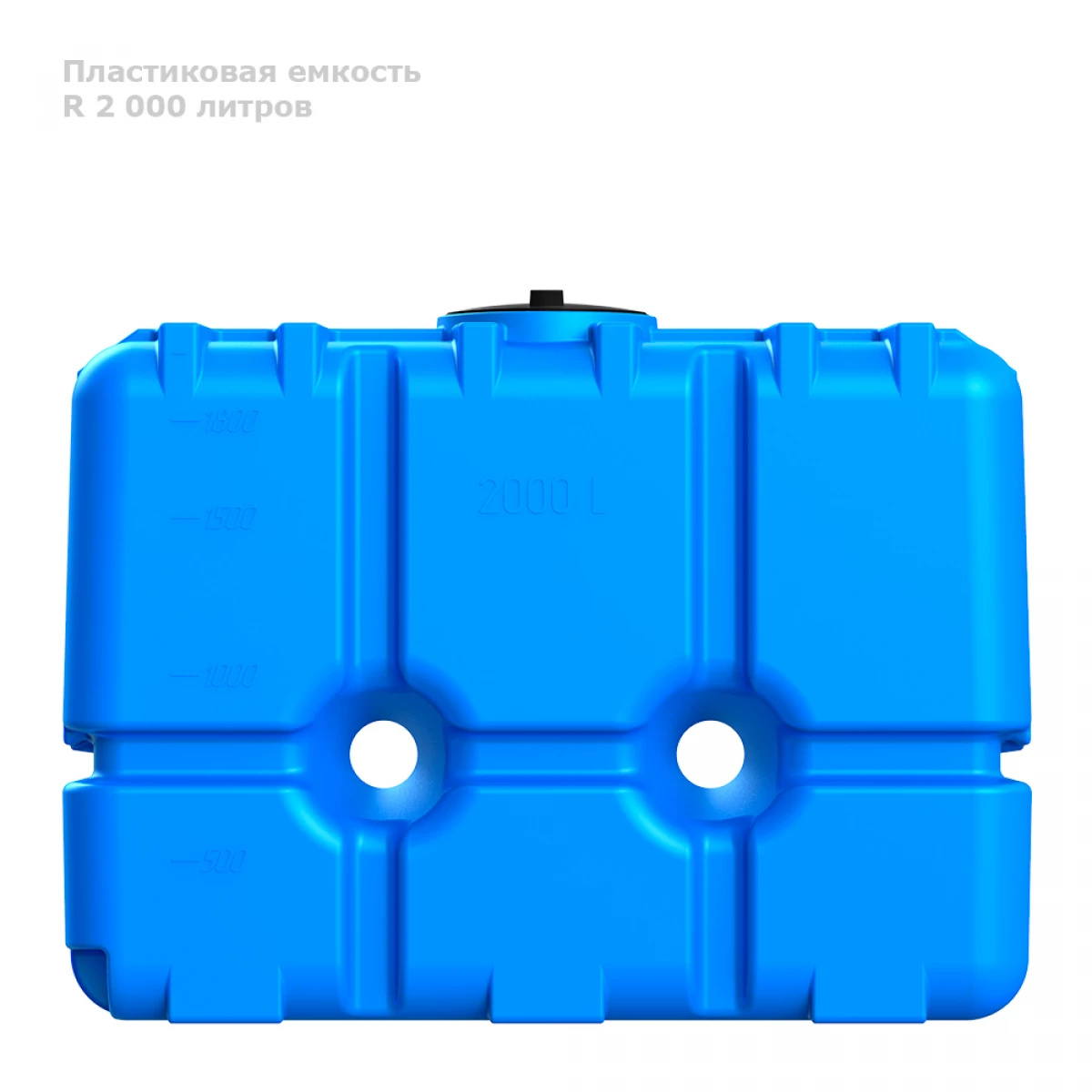 Емкость R 2000 – это прямоугольный пластиковый резервуар объемом 2000 л, предназначенный для хранения питьевой воды, полива на даче, использования под технические жидкости, а также дизельного топлива.