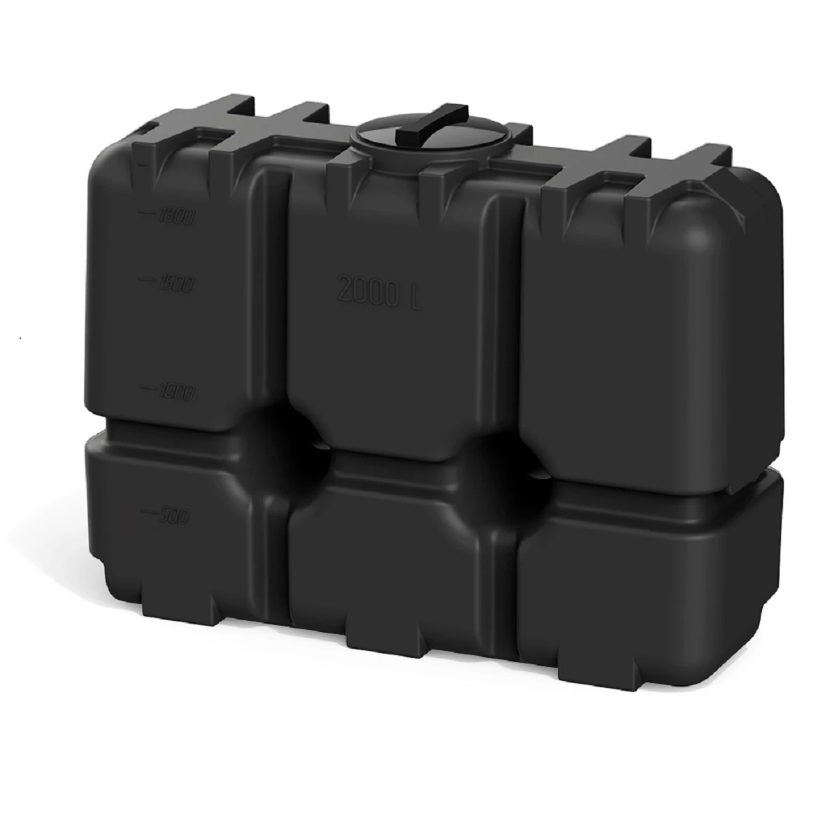 Емкость R 2000 – это прямоугольный пластиковый резервуар объемом 2000 л, предназначенный для хранения питьевой воды, полива на даче, использования под технические жидкости, а также дизельного топлива.