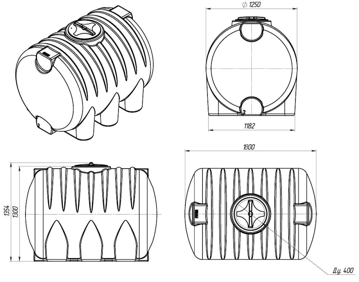 Горизонтальные емкости отличаются максимальной устойчивостью благодаря конфигурации с ножкамиГерметичные