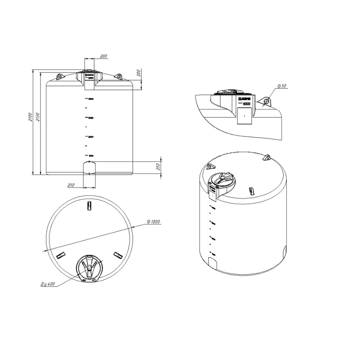 Емкость имеет специальные «серьги» для перемещения краном, которые обеспечивают удобство погрузочно-разгрузочных работ