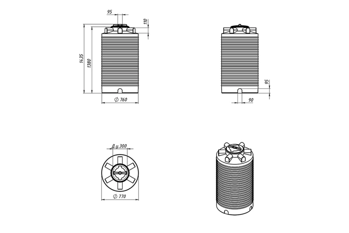 ртикальная цилиндрическая бочка серии ЭВЛ-Т объемом 500 литров имеет компактные габариты и может быть размещена даже в условии дефицита свободной площади.