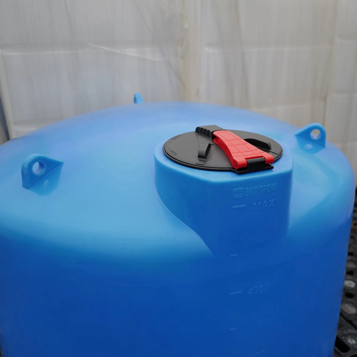 Имеет смещенную относительно центра горловину, для облегчения доступа к крышке емкости. Оборудована откидной крышкой, которая обеспечивает максимальное удобство в эксплуатации. Диаметр горловины емкости составляет 400 мм, диаметр откидной крышки 457 мм.