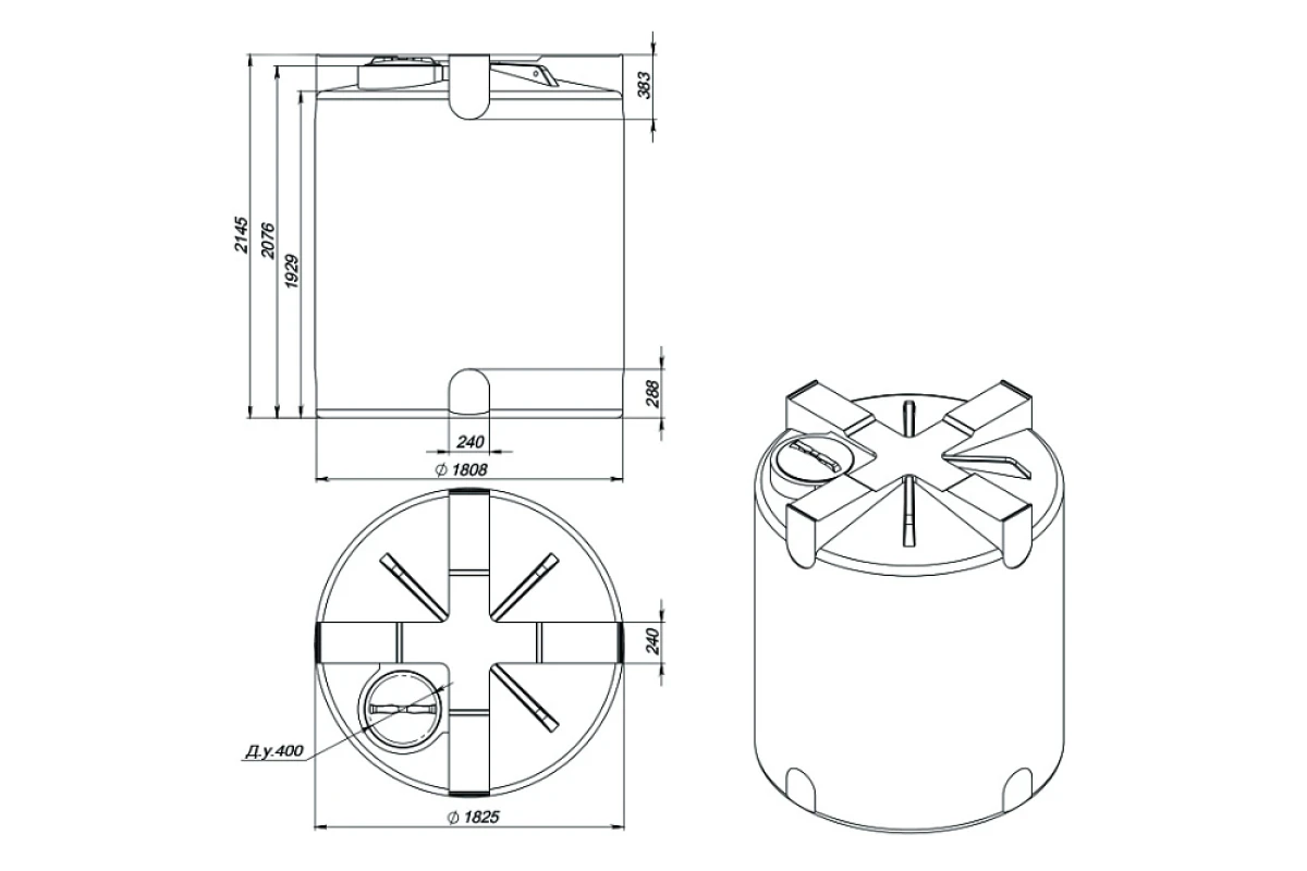 Крупногабаритная вертикальная емкость T объемом 5 кубов имеет фактический объем более 5400 литров.