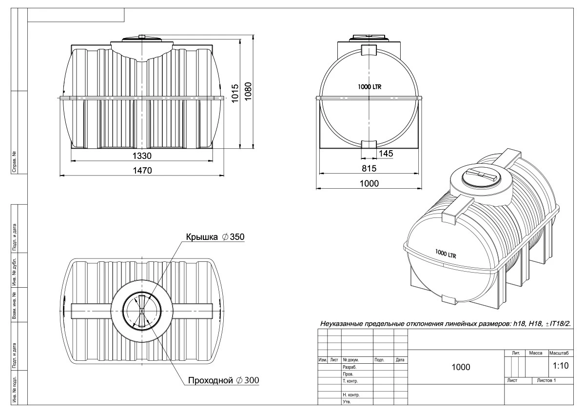 Горизонтальная цилиндрическая емкость G 1000 предназначена для хранения питьевой и технической воды, дизельного топлива.